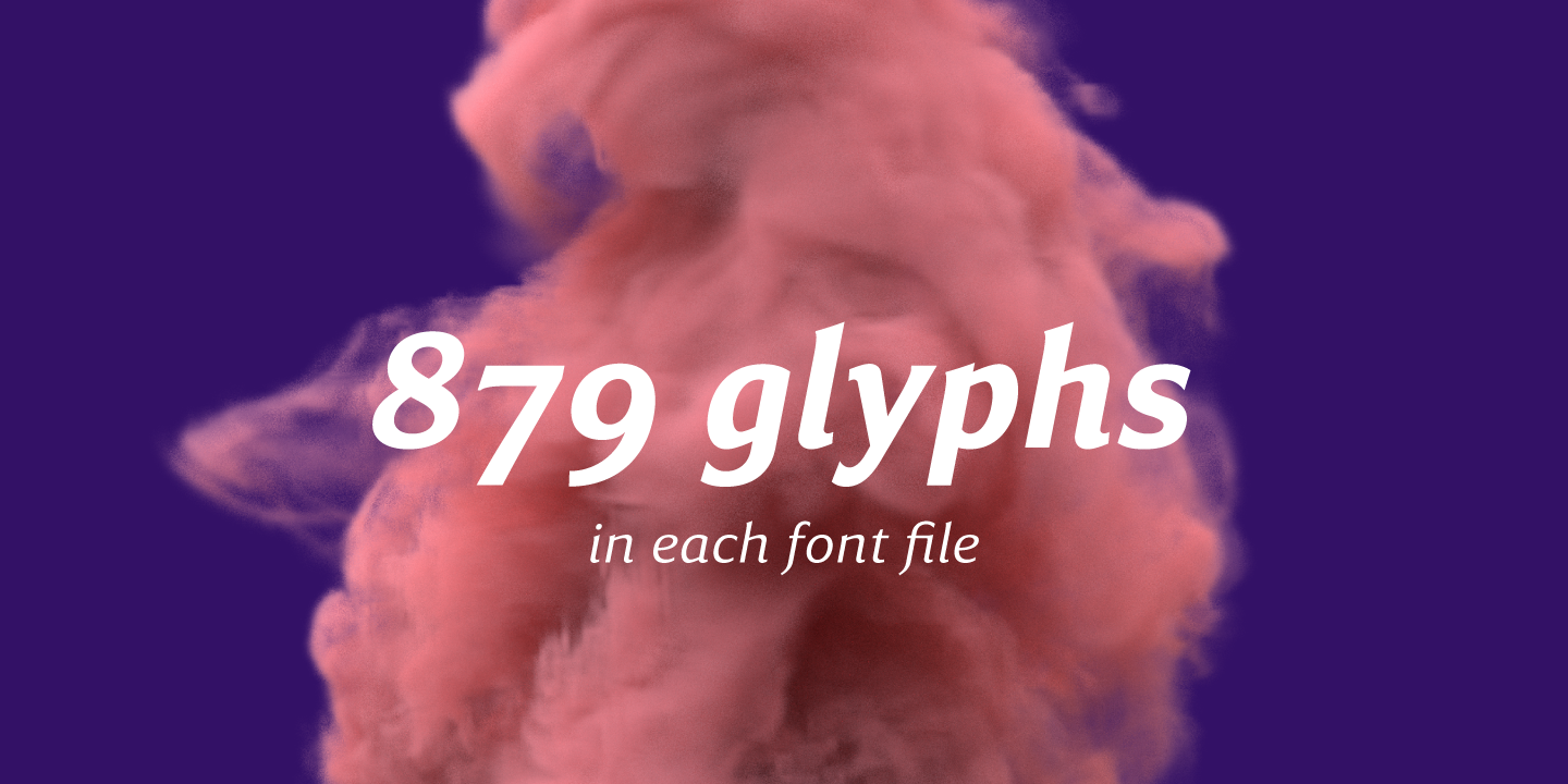 The font family contains 8 weights from Thin to Extra Bold, with matching true italics. It supports extensive language support including Cyrillic, as well as numerous OpenType features such as small caps, ligatures, several sets of figures, case-sensitive punctuation, ordinals.