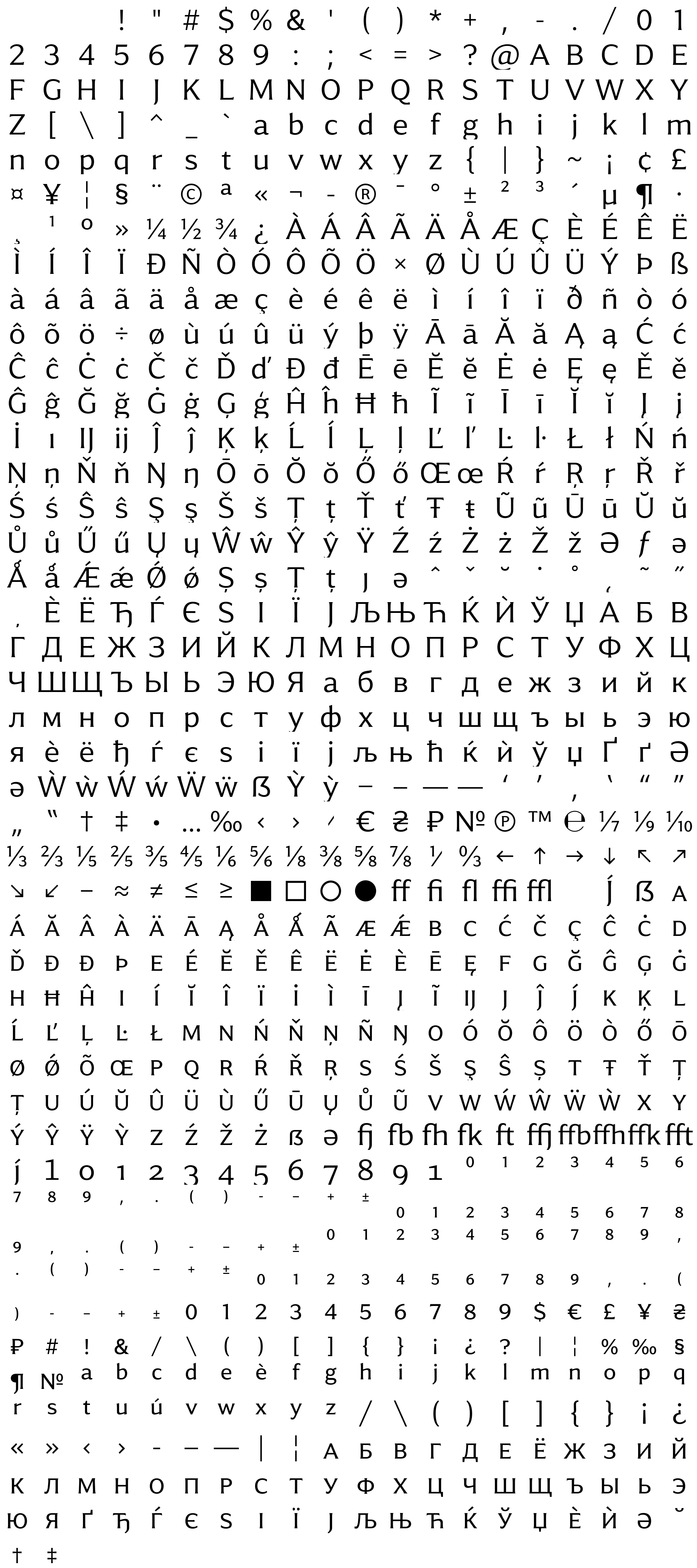 Due to the nature of thumbs' generation process, some of the glyphs in the glyph map may appear cropped.