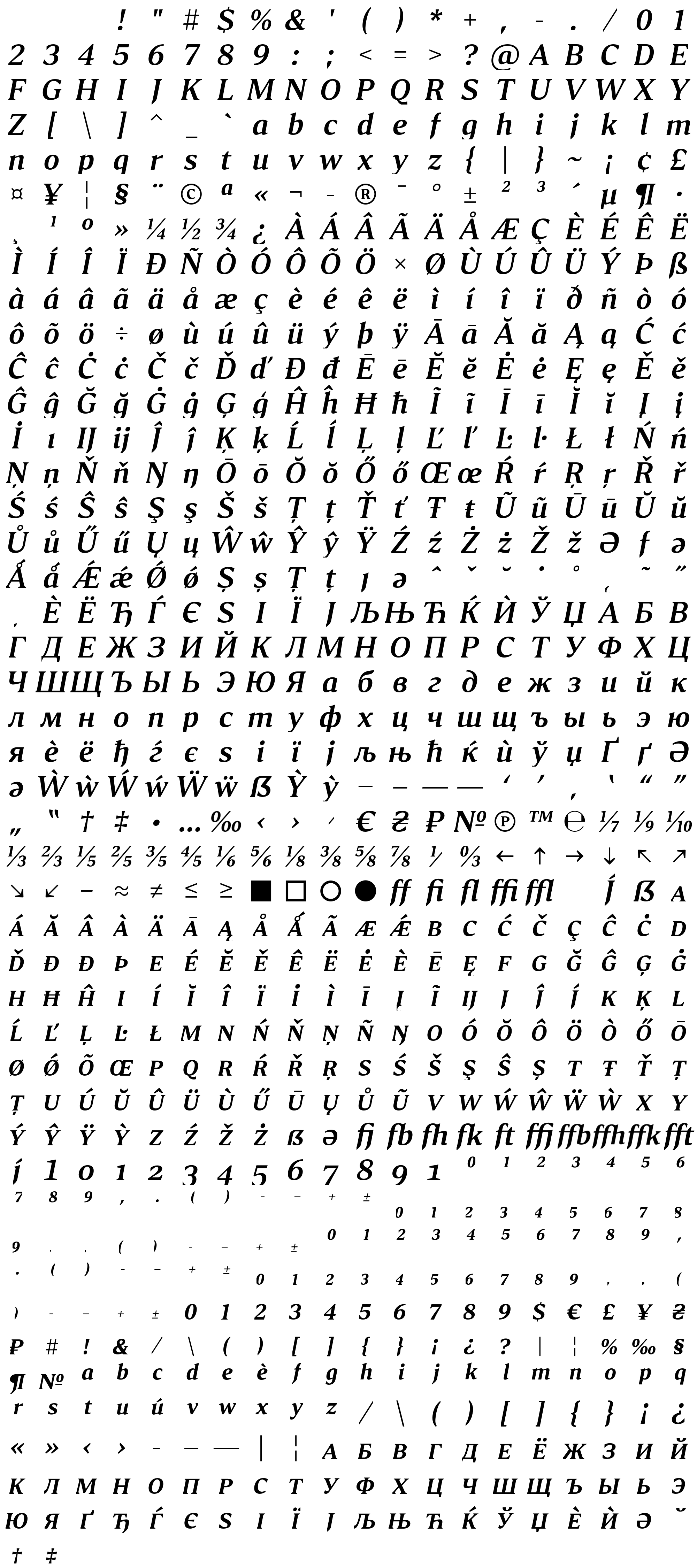 Due to the nature of thumbs' generation process, some of the glyphs in the glyph map may appear cropped.