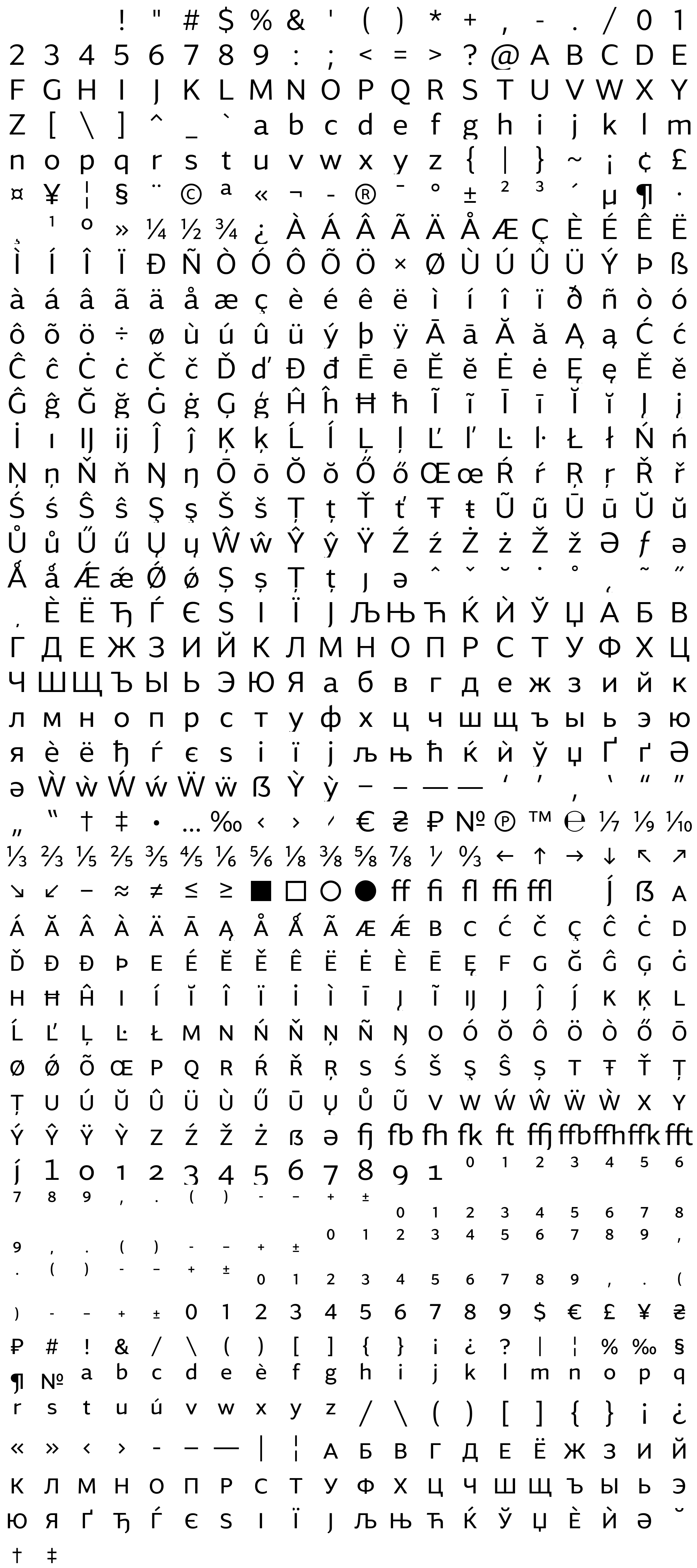 Due to the nature of thumbs' generation process, some of the glyphs in the glyph map may appear cropped.