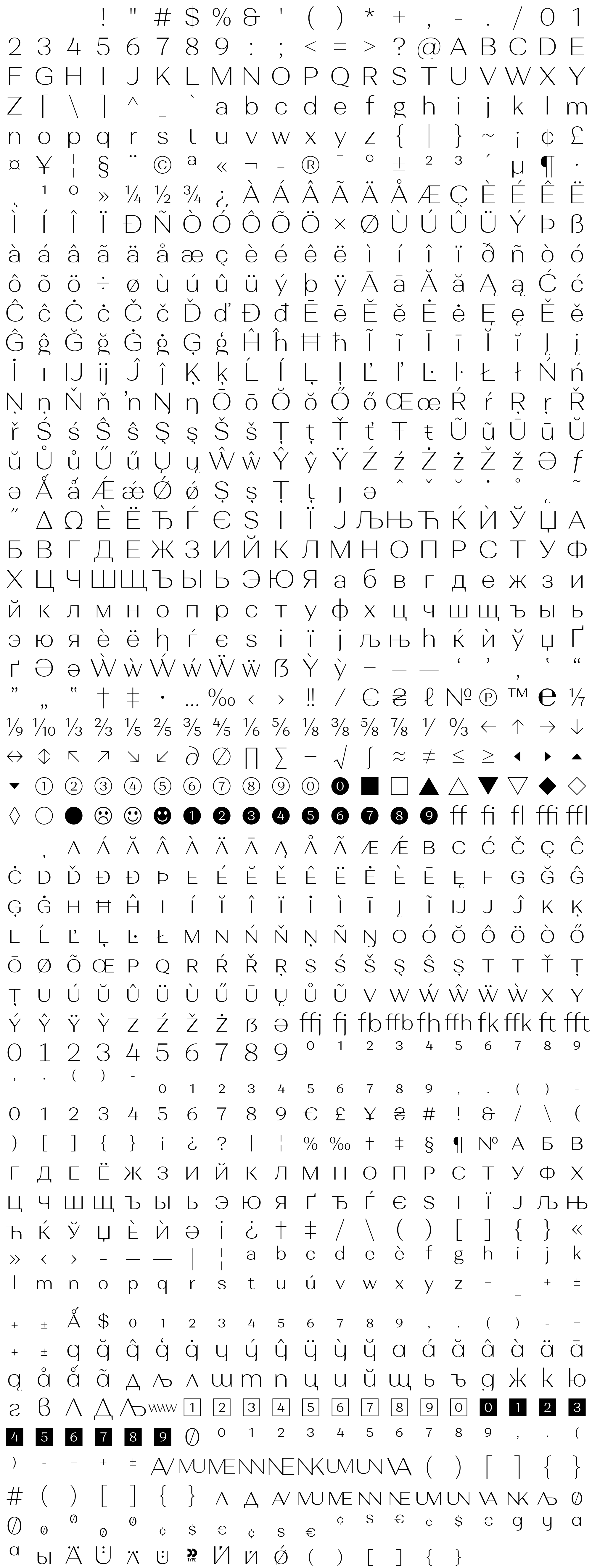 Due to the nature of thumbs' generation process, some of the glyphs in the glyph map may appear cropped.