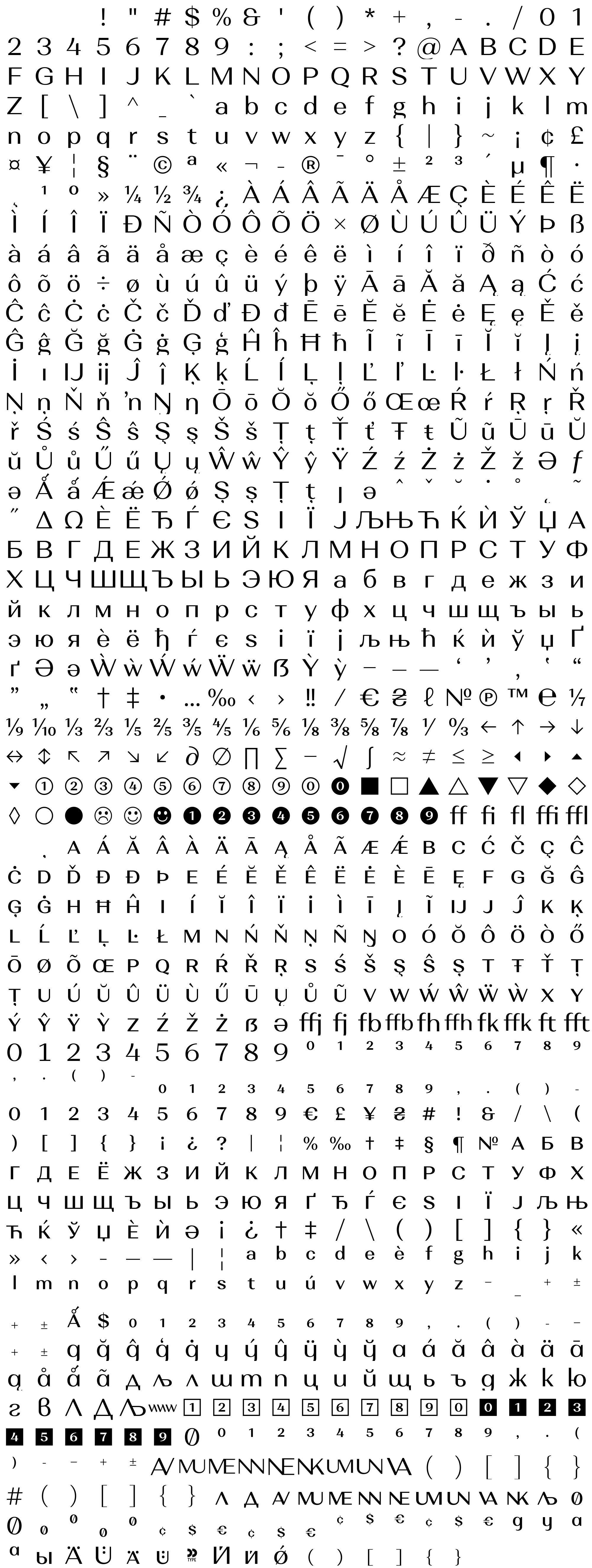 Due to the nature of thumbs' generation process, some of the glyphs in the glyph map may appear cropped.