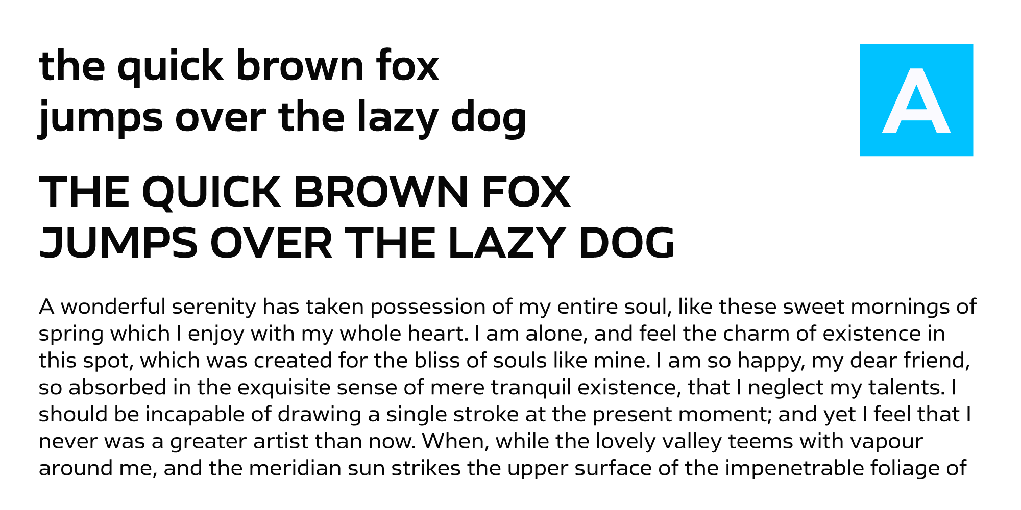 Ambulatoria is a sturdy open aperture sans-serif that comes in four variations. Each variation, A, B, C, and D, contains alternative variants for certain glyphs that allow the designer to change character and texture of the text.
