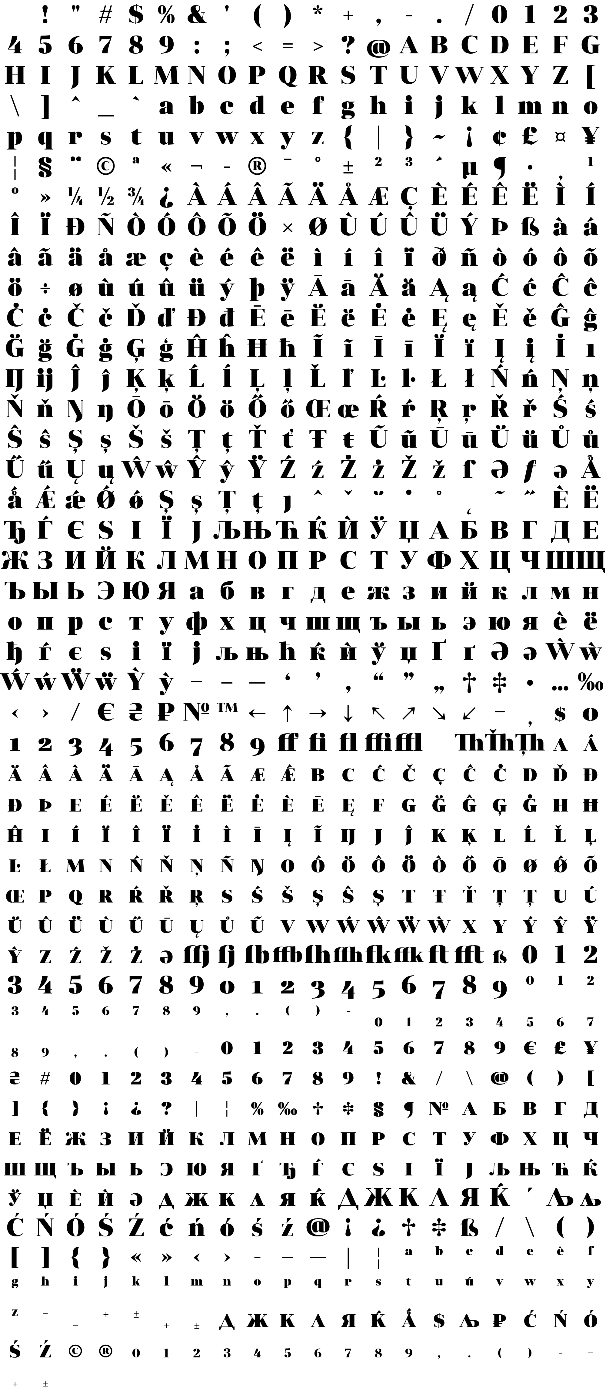 Due to the nature of thumbs' generation process, some of the glyphs in the glyph map may appear cropped.