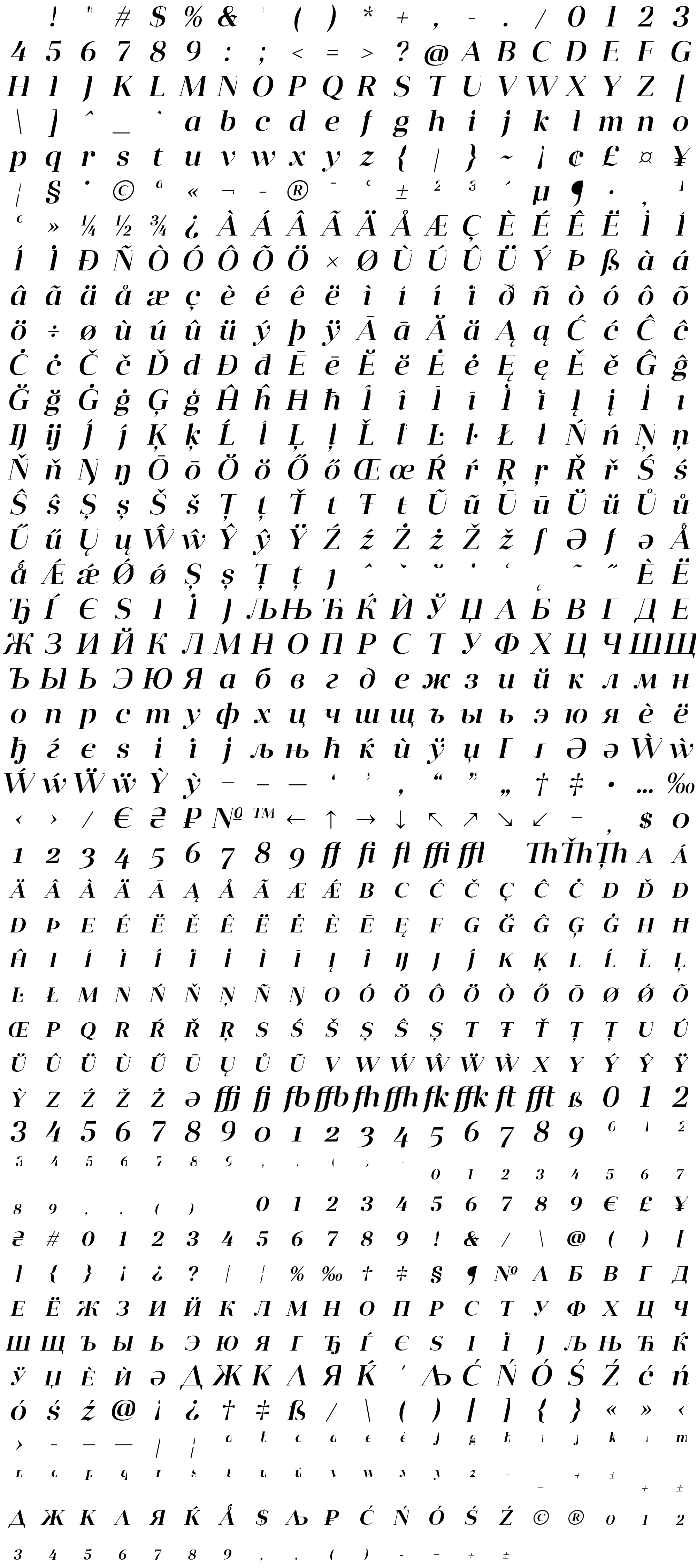Due to the nature of thumbs' generation process, some of the glyphs in the glyph map may appear cropped.