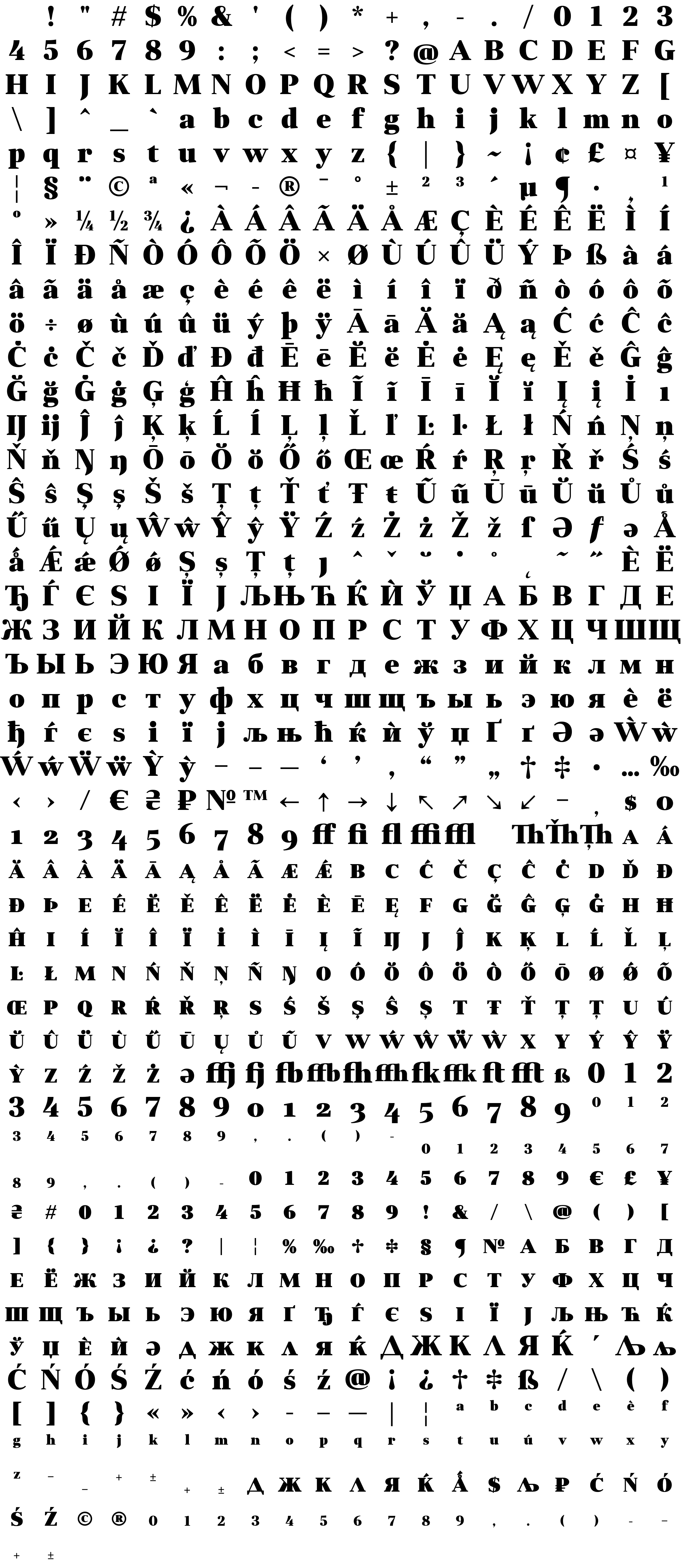 Due to the nature of thumbs' generation process, some of the glyphs in the glyph map may appear cropped.