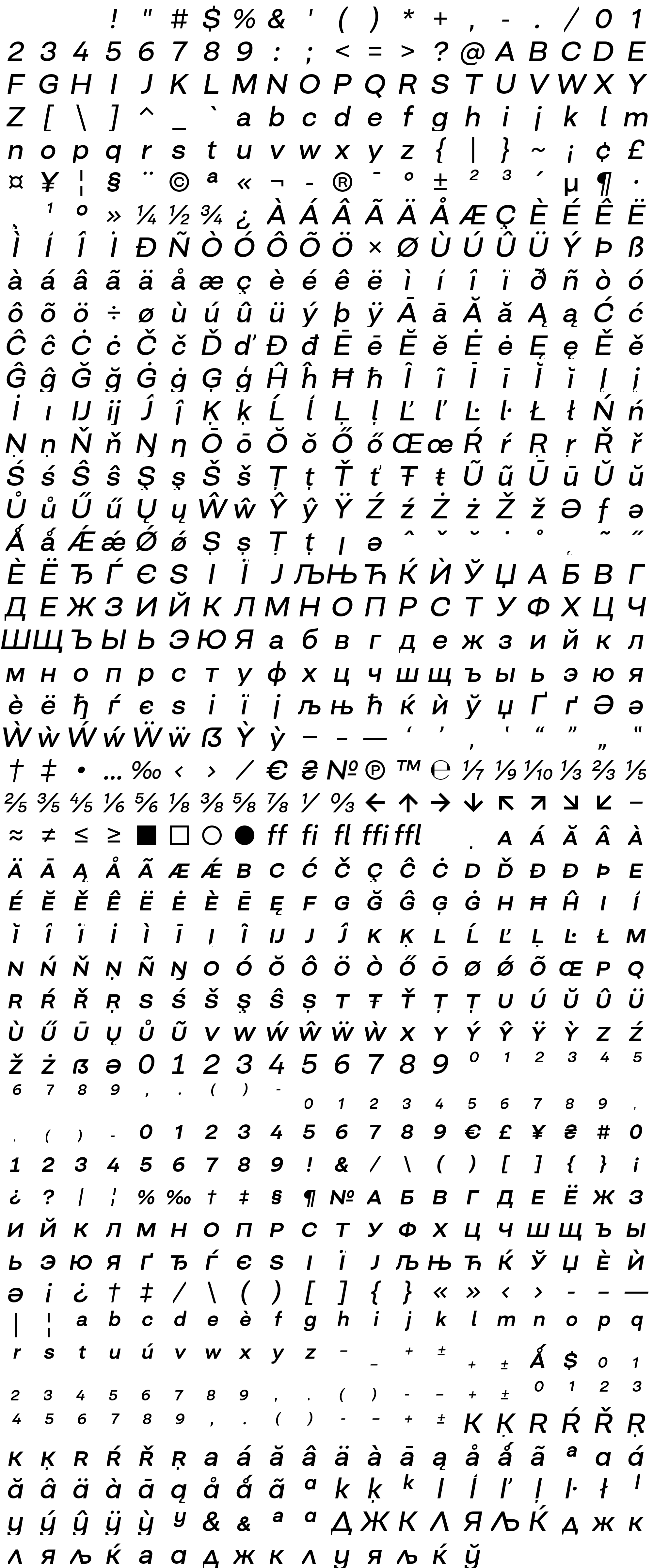 Due to the nature of thumbs' generation process, some of the glyphs in the glyph map may appear cropped.