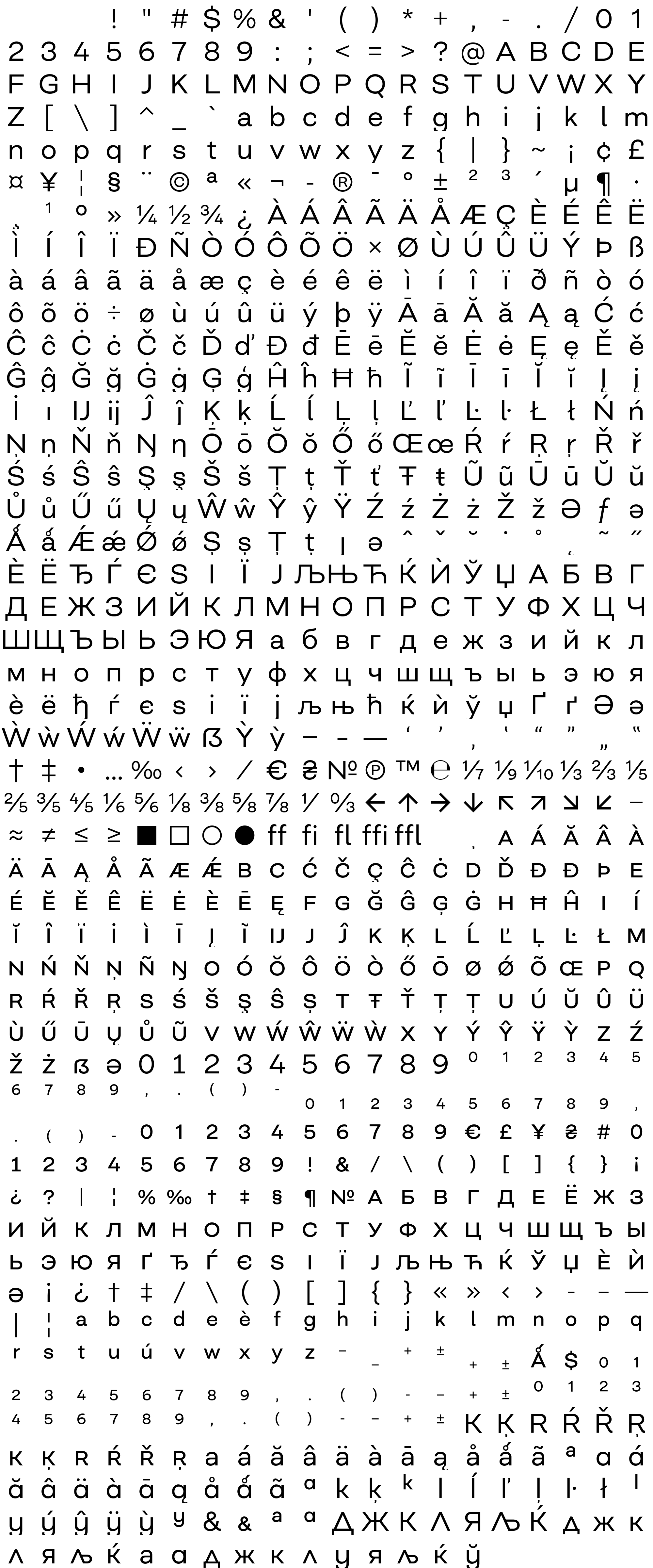 Due to the nature of thumbs' generation process, some of the glyphs in the glyph map may appear cropped.