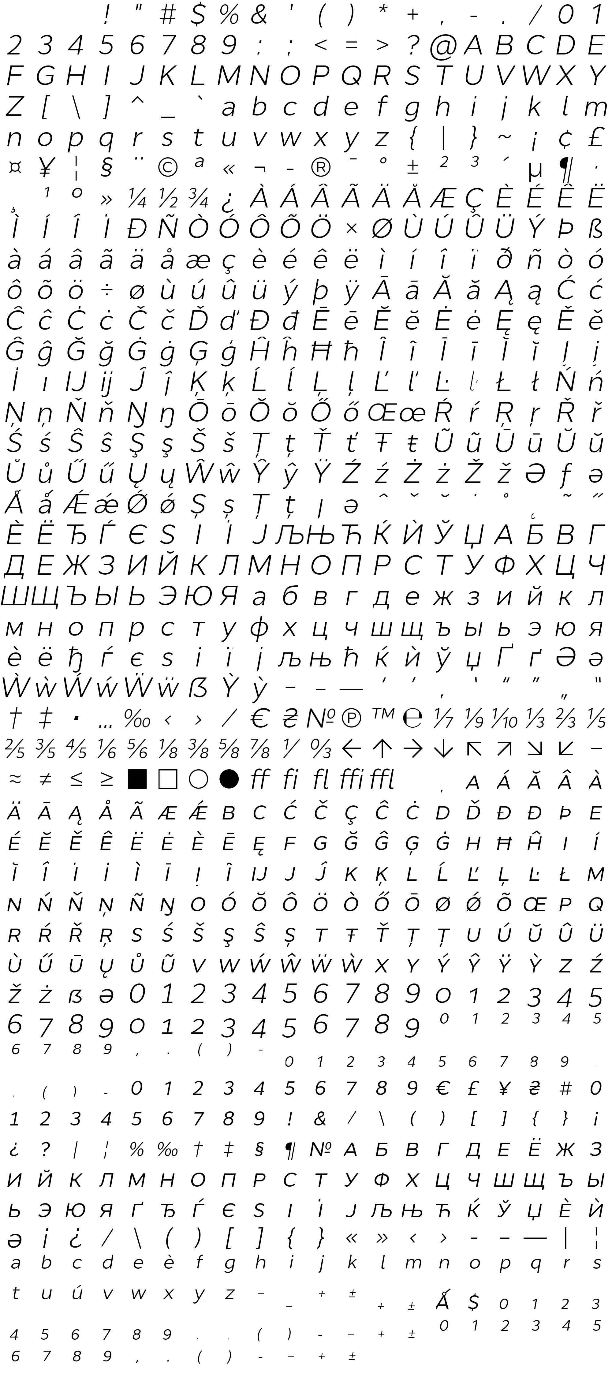 Due to the nature of thumbs' generation process, some of the glyphs in the glyph map may appear cropped.