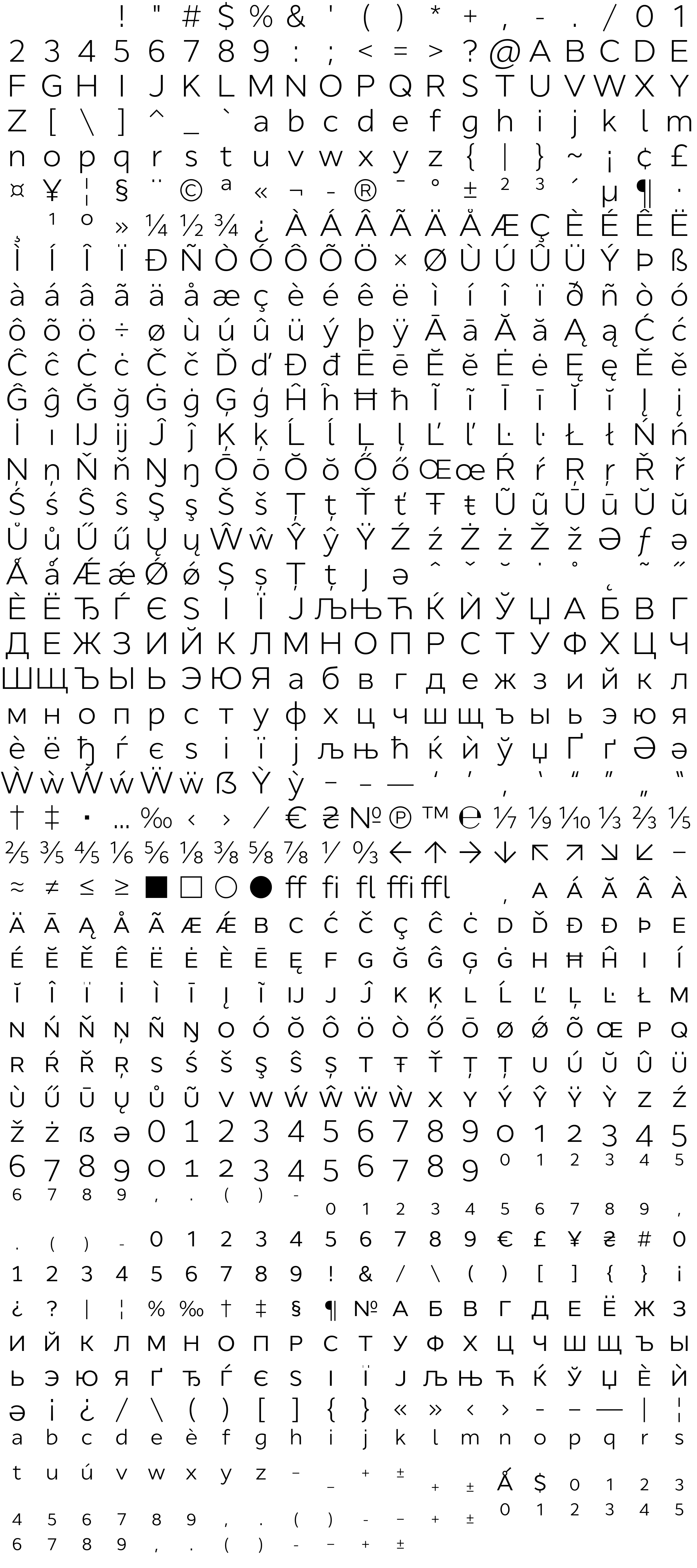 Due to the nature of thumbs' generation process, some of the glyphs in the glyph map may appear cropped.