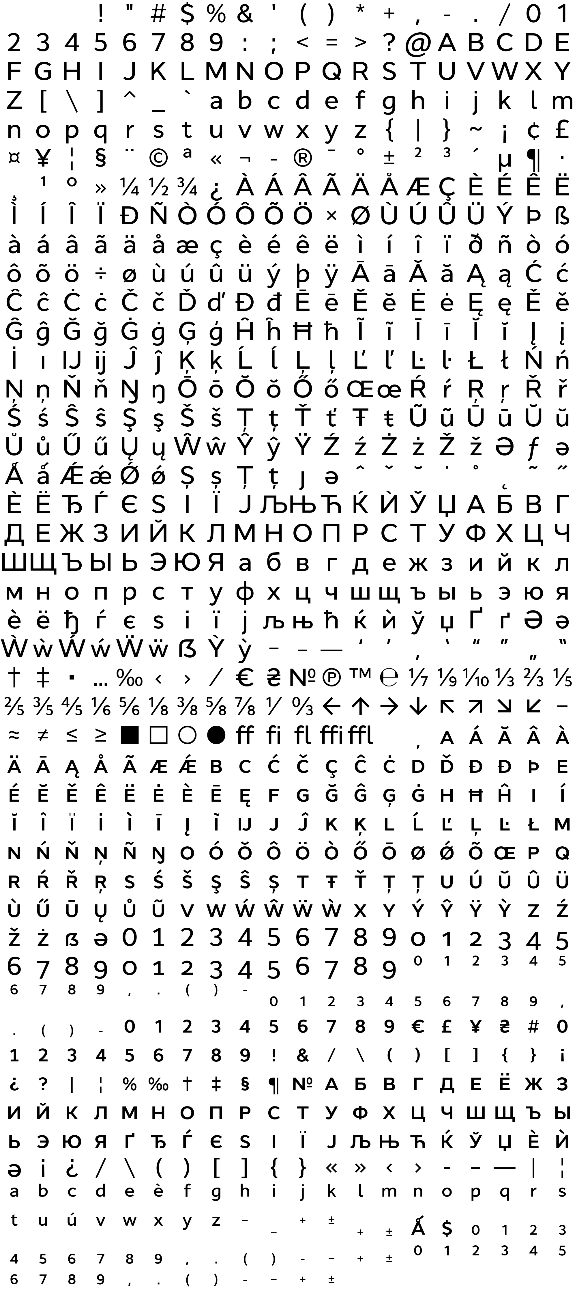 Due to the nature of thumbs' generation process, some of the glyphs in the glyph map may appear cropped.