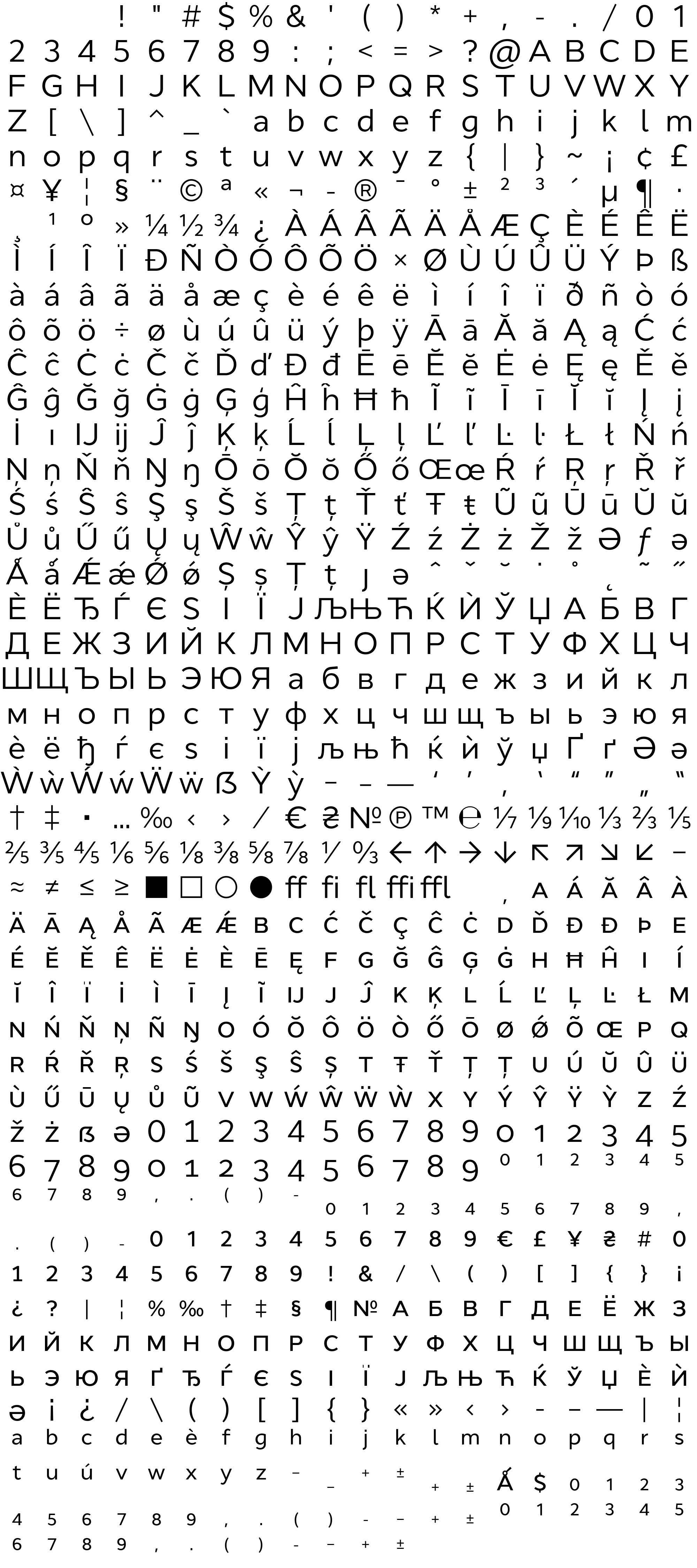 Due to the nature of thumbs' generation process, some of the glyphs in the glyph map may appear cropped.