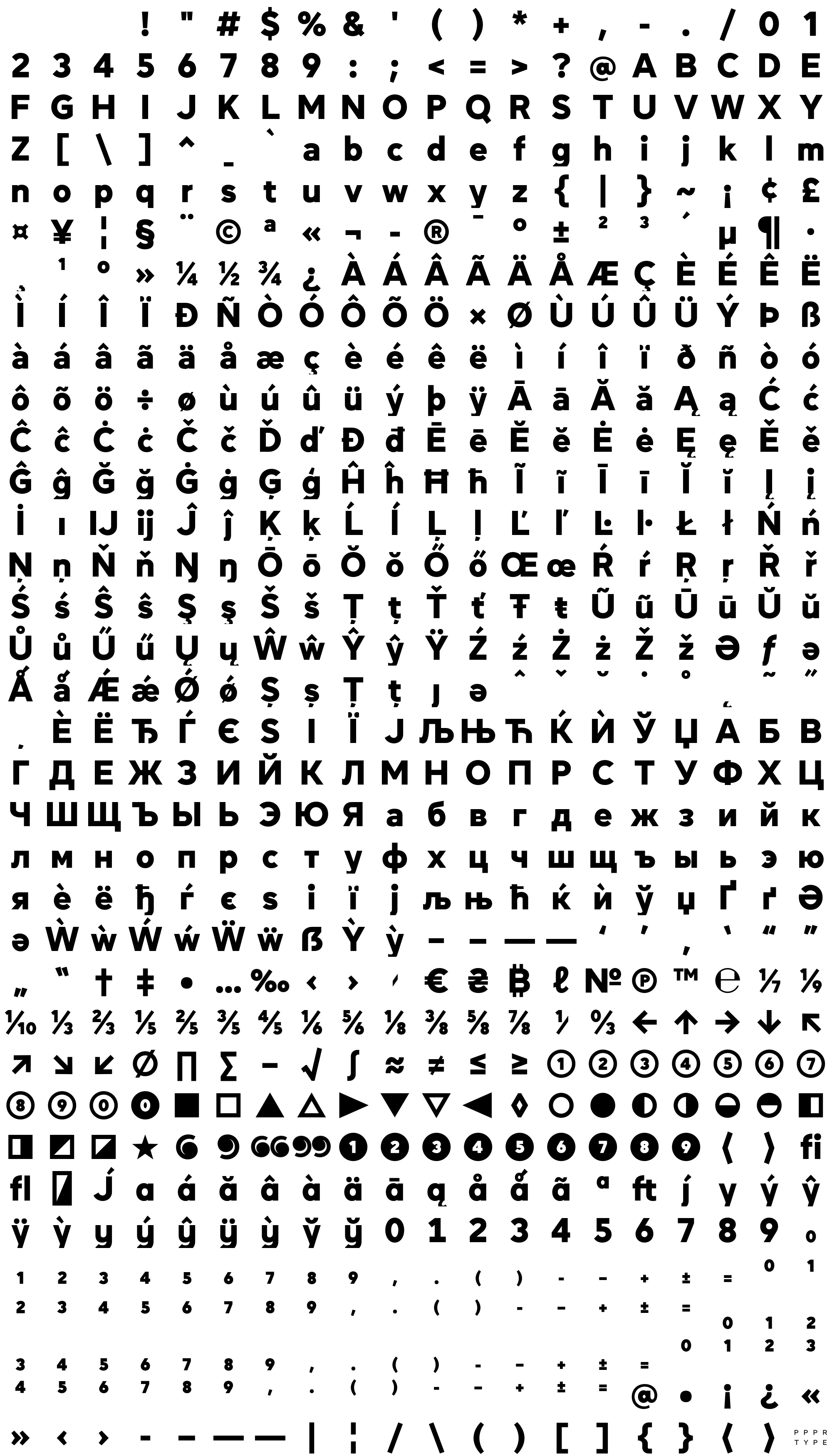 Due to the nature of thumbs' generation process, some of the glyphs in the glyph map may appear cropped.