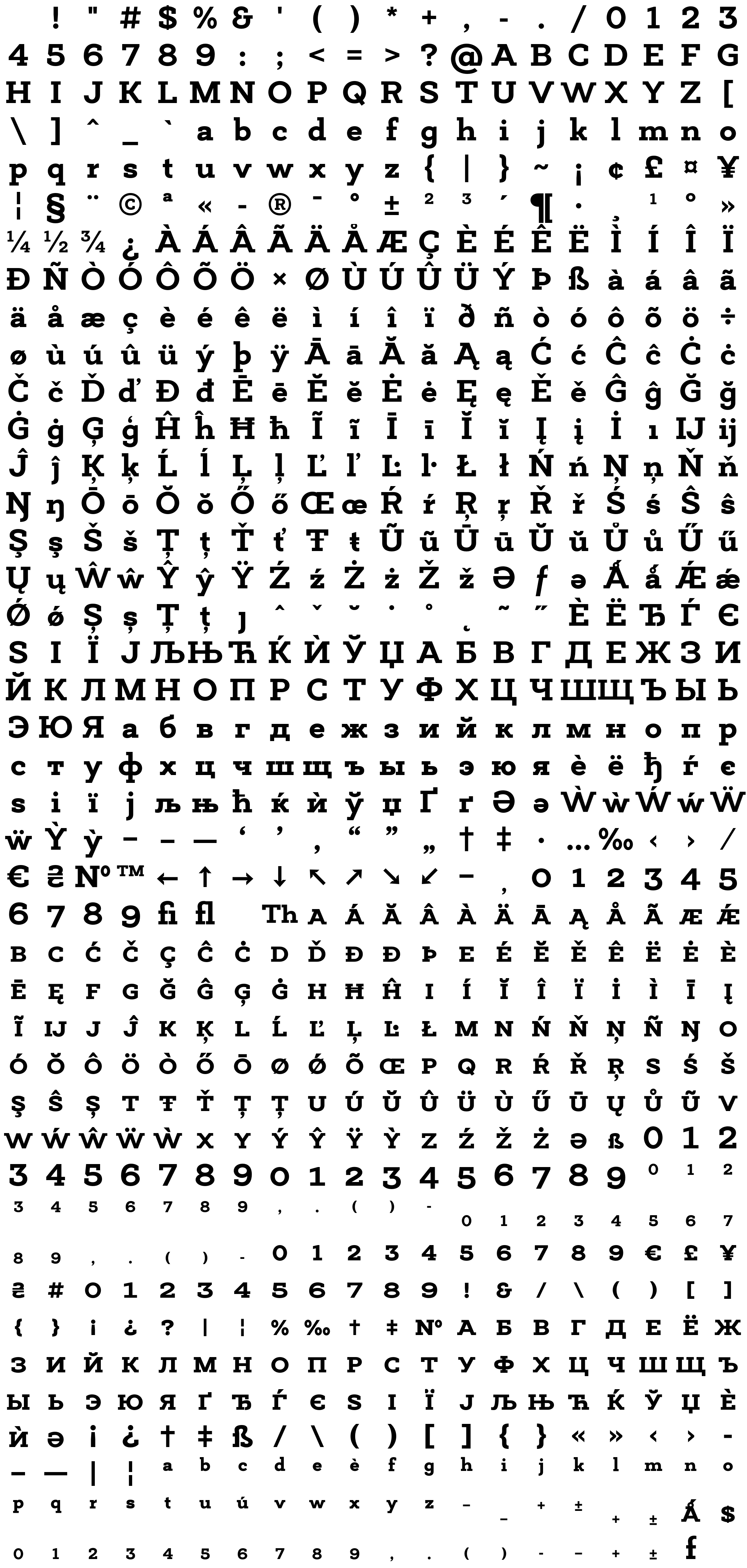 Due to the nature of thumbs' generation process, some of the glyphs in the glyph map may appear cropped.