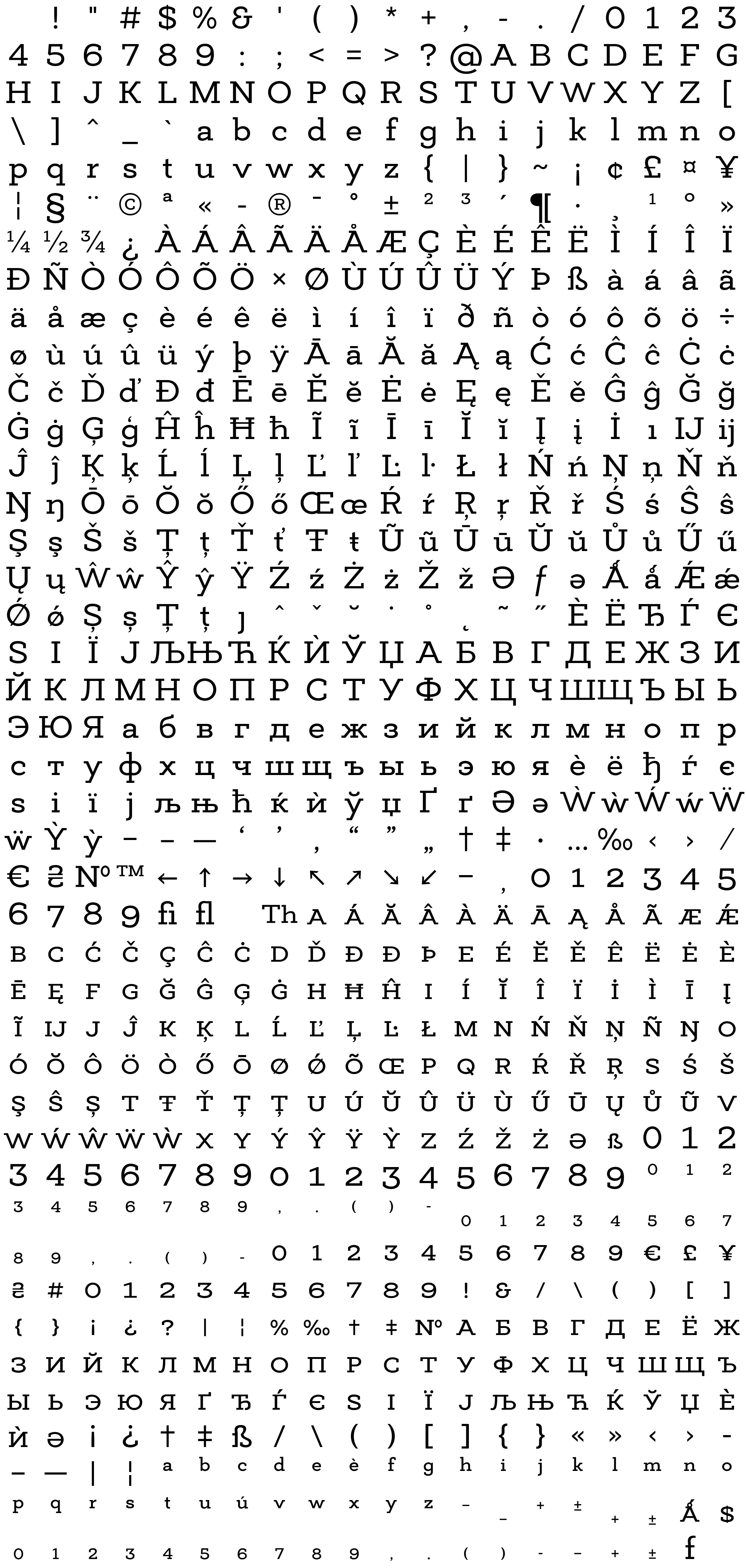 Due to the nature of thumbs' generation process, some of the glyphs in the glyph map may appear cropped.