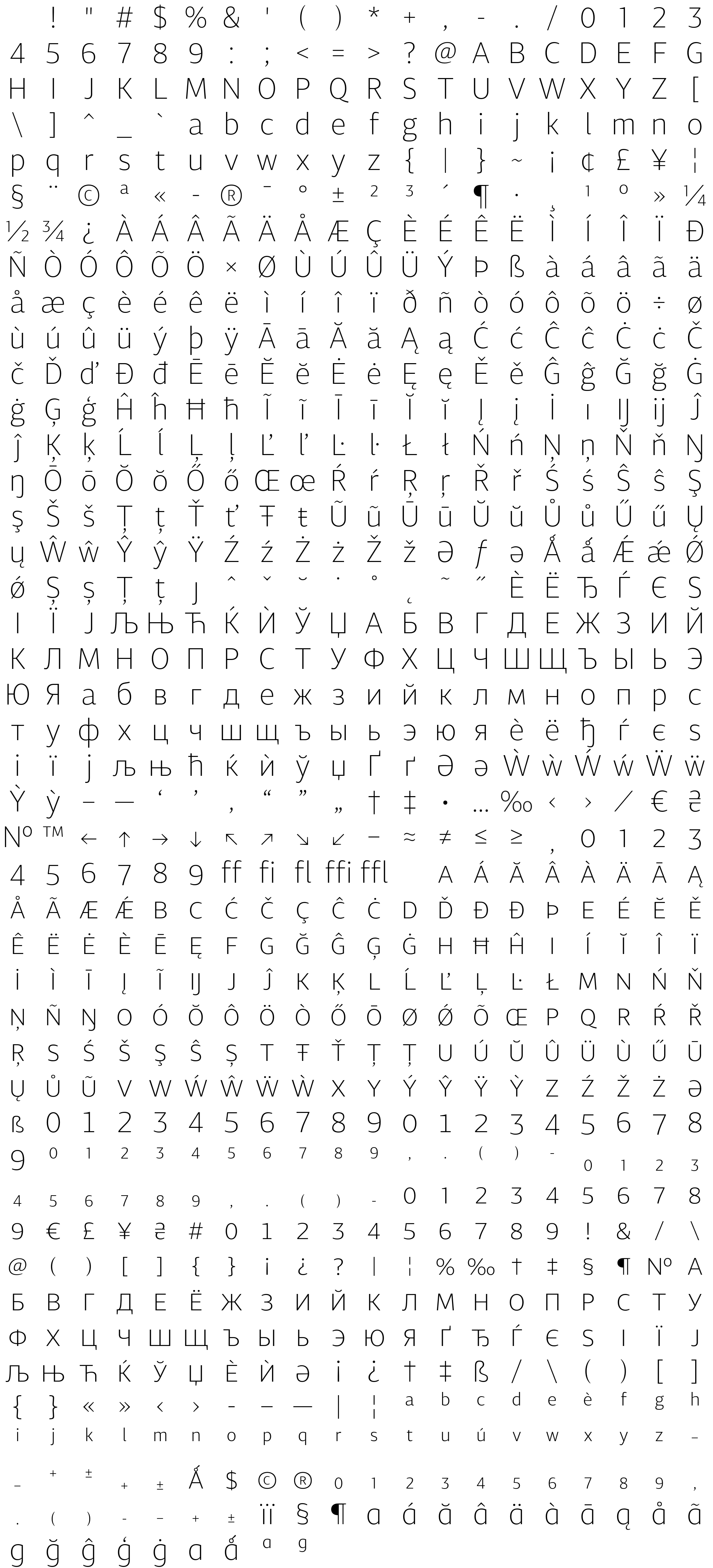 Due to the nature of thumbs' generation process, some of the glyphs in the glyph map may appear cropped.