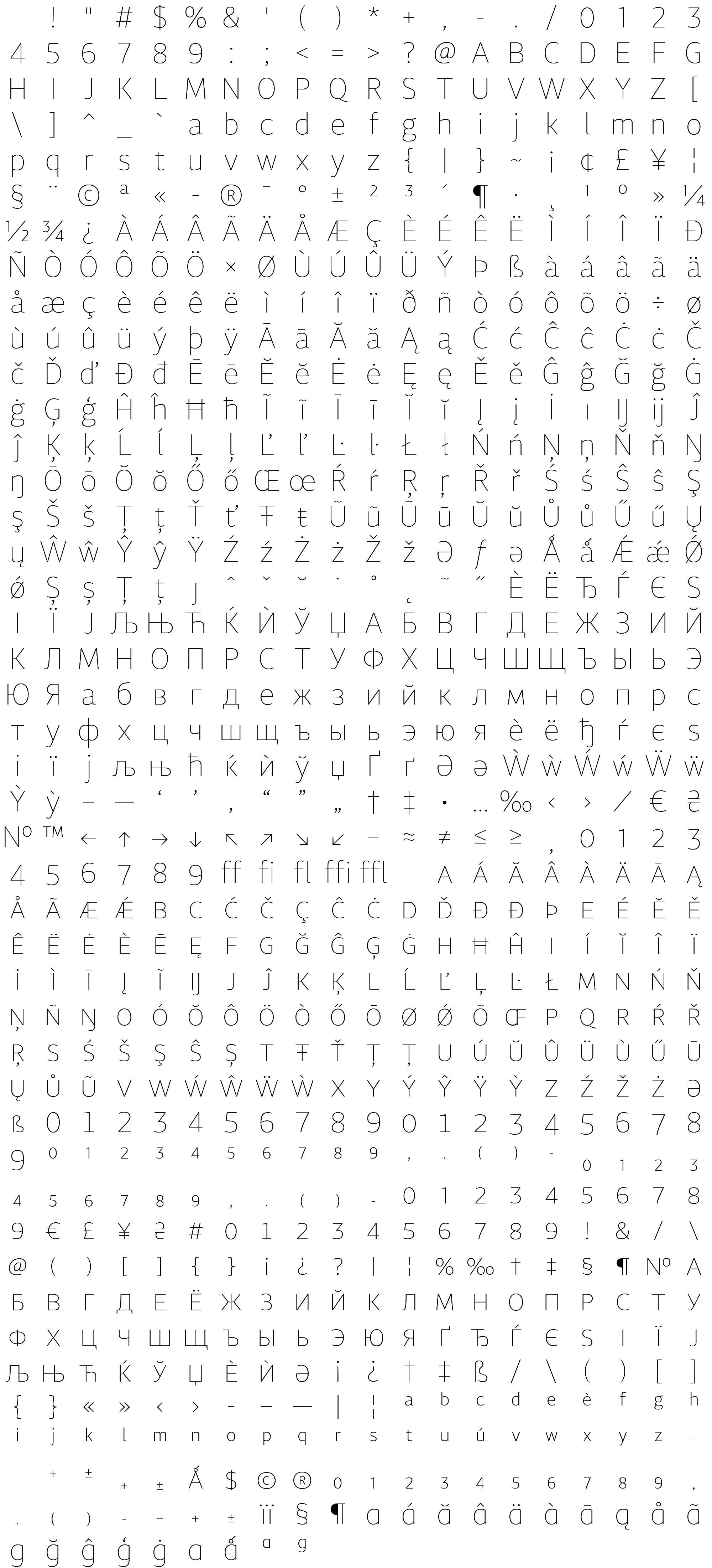Due to the nature of thumbs' generation process, some of the glyphs in the glyph map may appear cropped.
