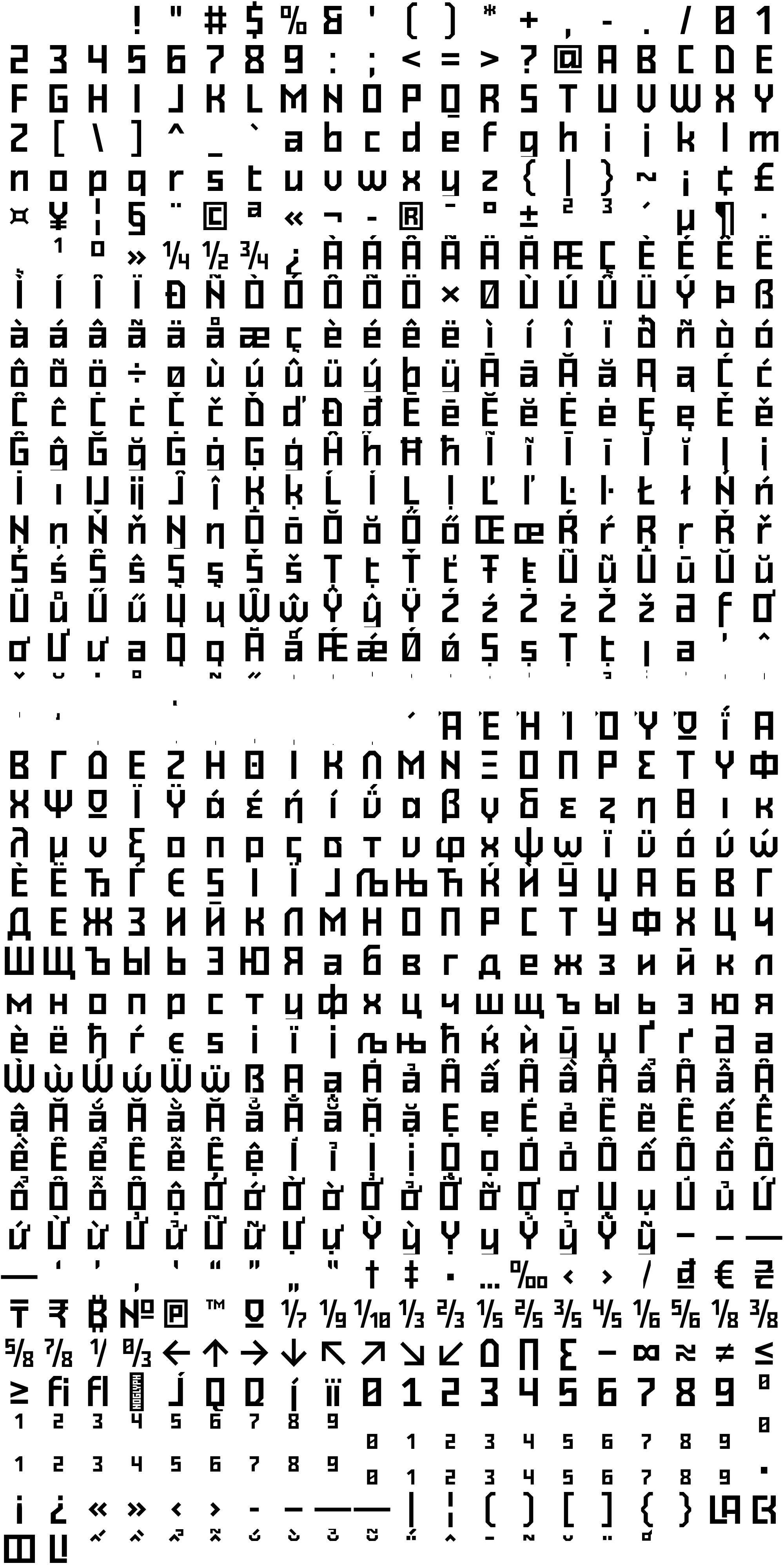 Due to the nature of thumbs' generation process, some of the glyphs in the glyph map may appear cropped.