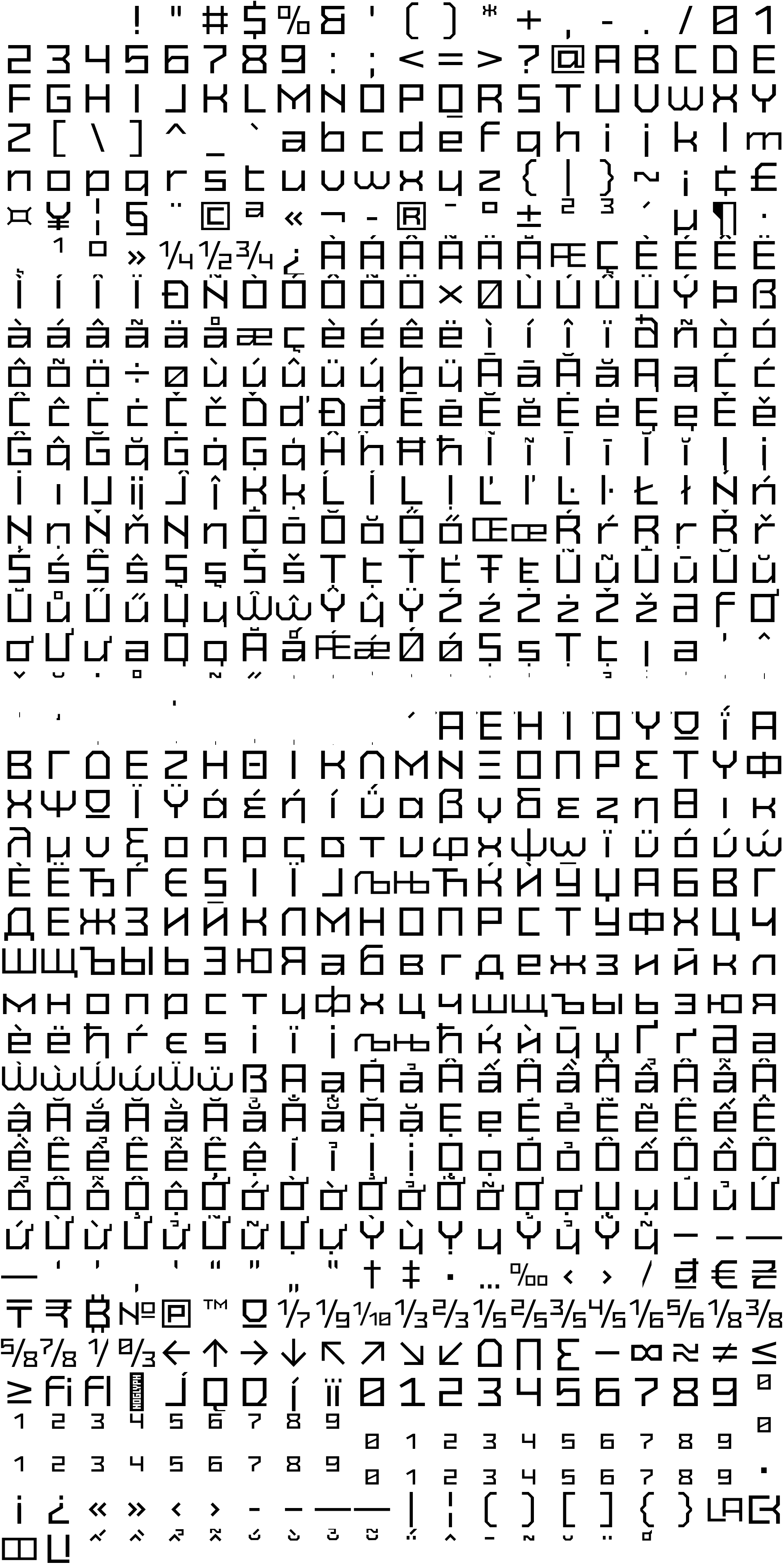 Due to the nature of thumbs' generation process, some of the glyphs in the glyph map may appear cropped.
