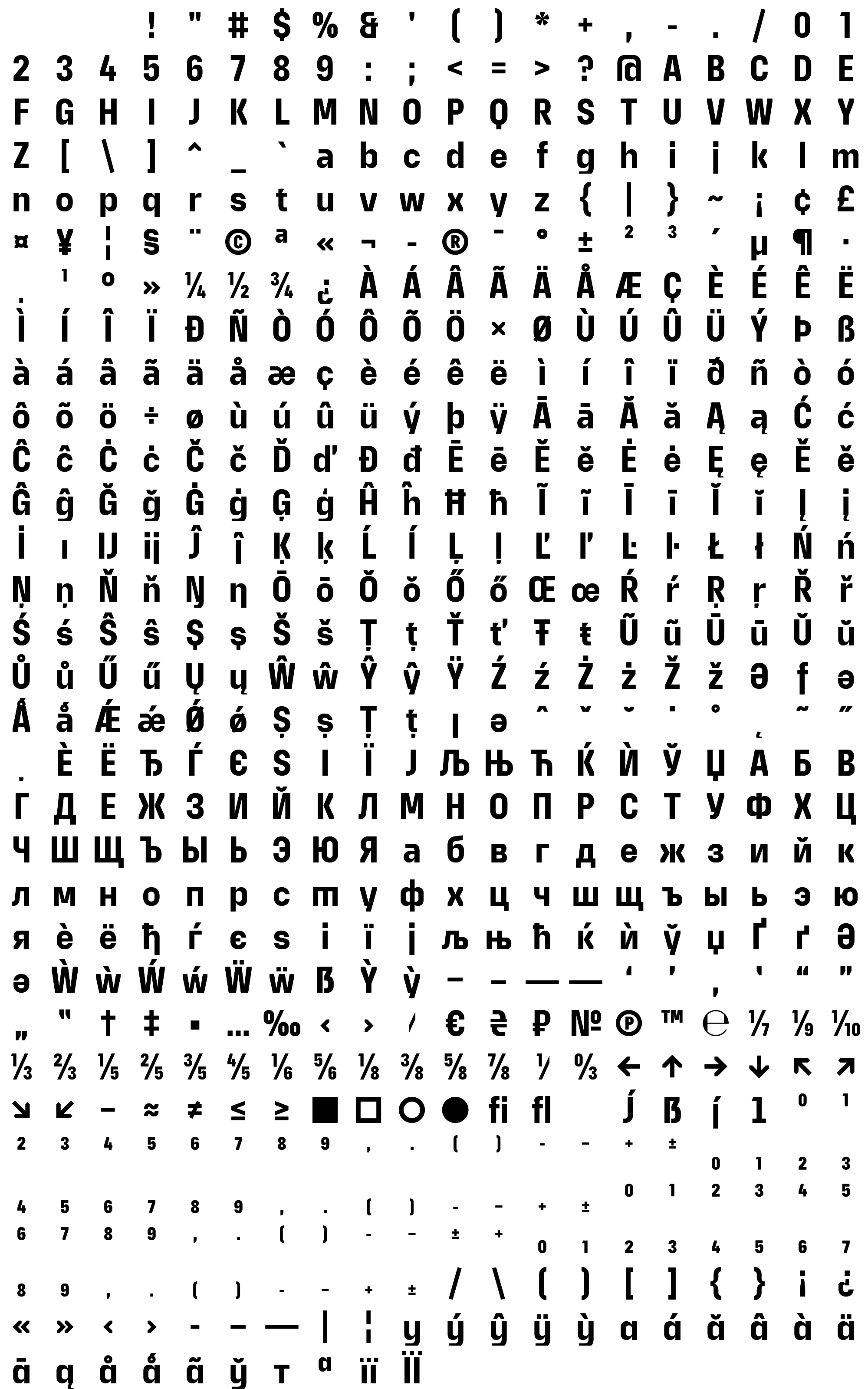 Due to the nature of thumbs' generation process, some of the glyphs in the glyph map may appear cropped.