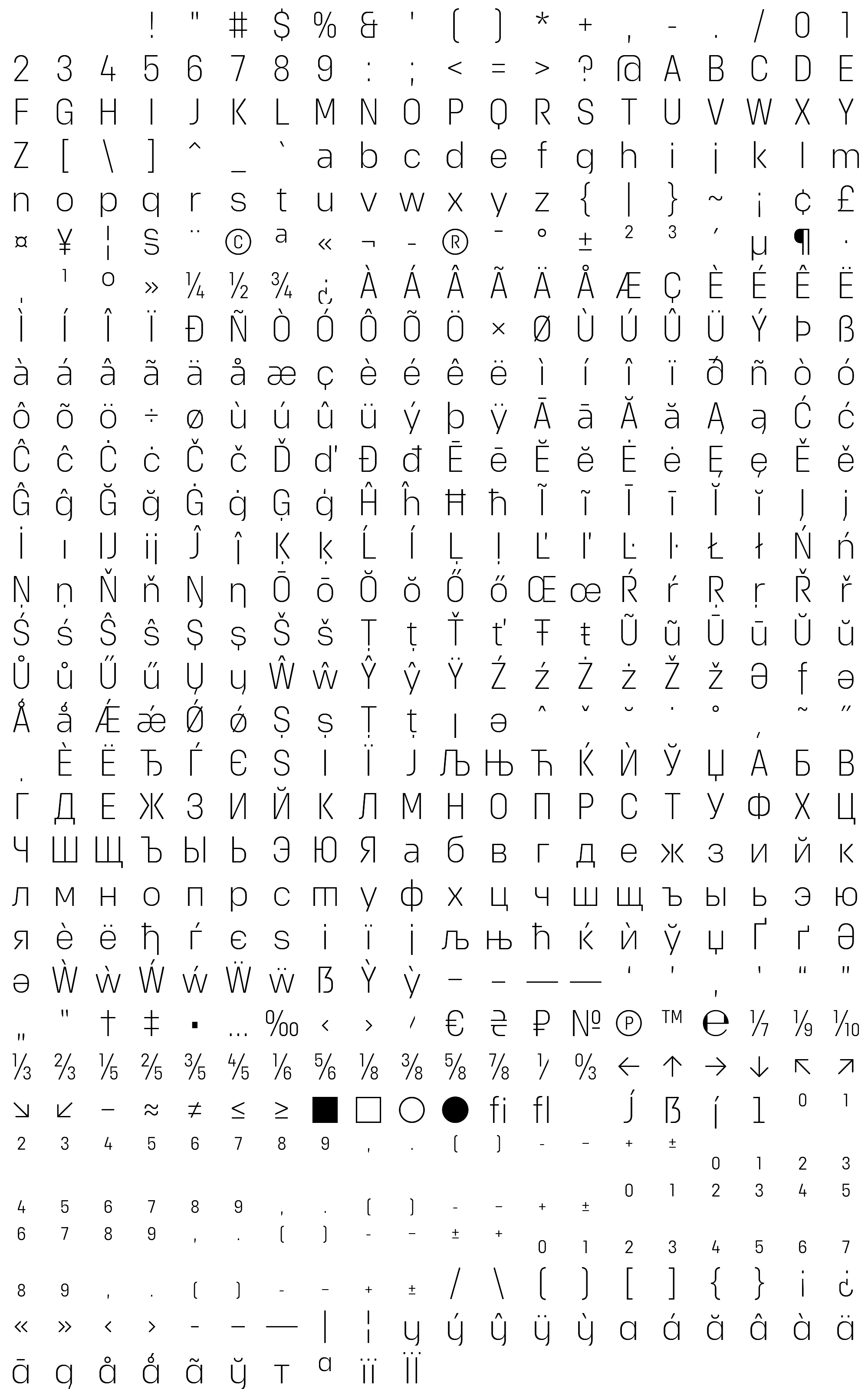 Due to the nature of thumbs' generation process, some of the glyphs in the glyph map may appear cropped.