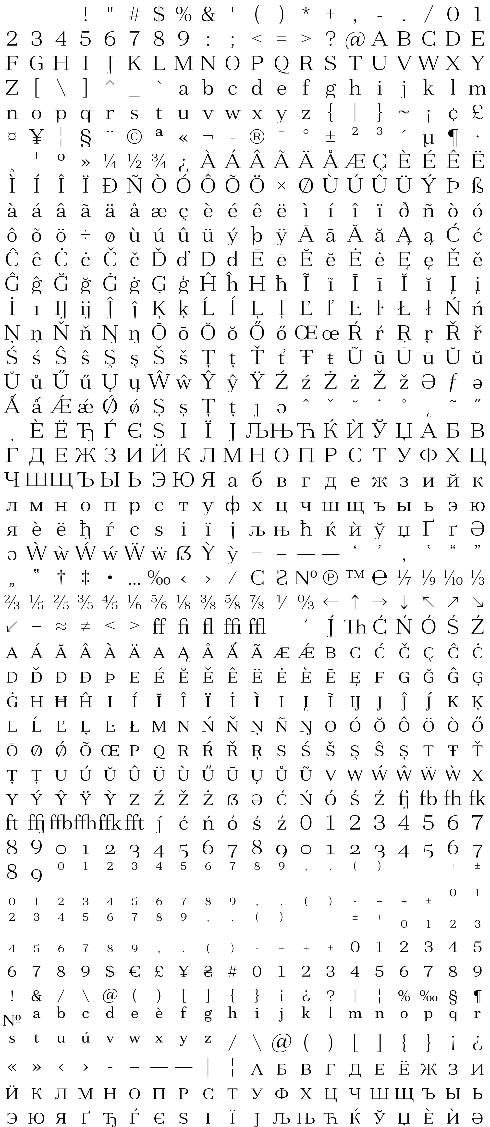 Due to the nature of thumbs' generation process, some of the glyphs in the glyph map may appear cropped.