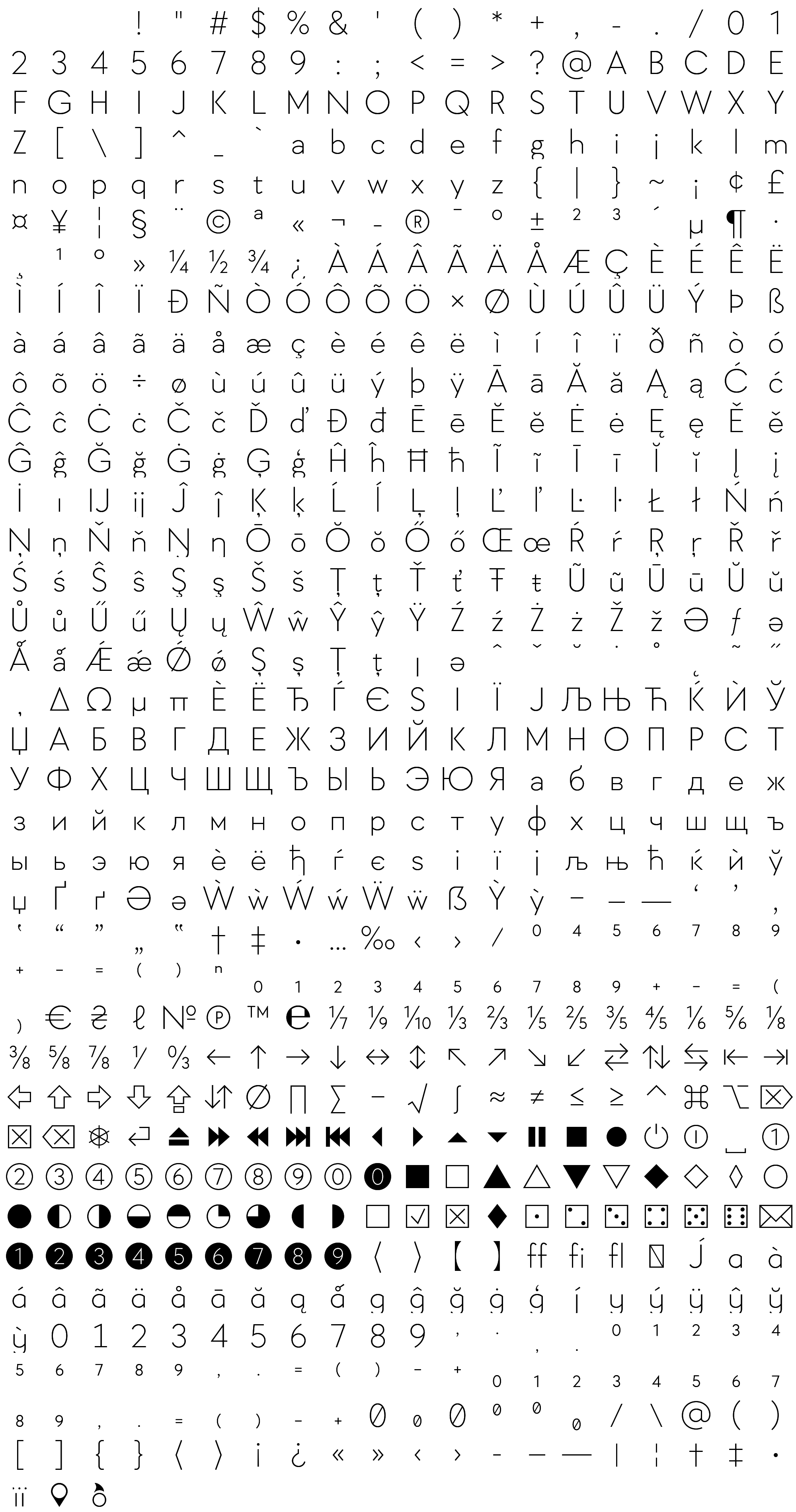 Due to the nature of thumbs' generation process, some of the glyphs in the glyph map may appear cropped.