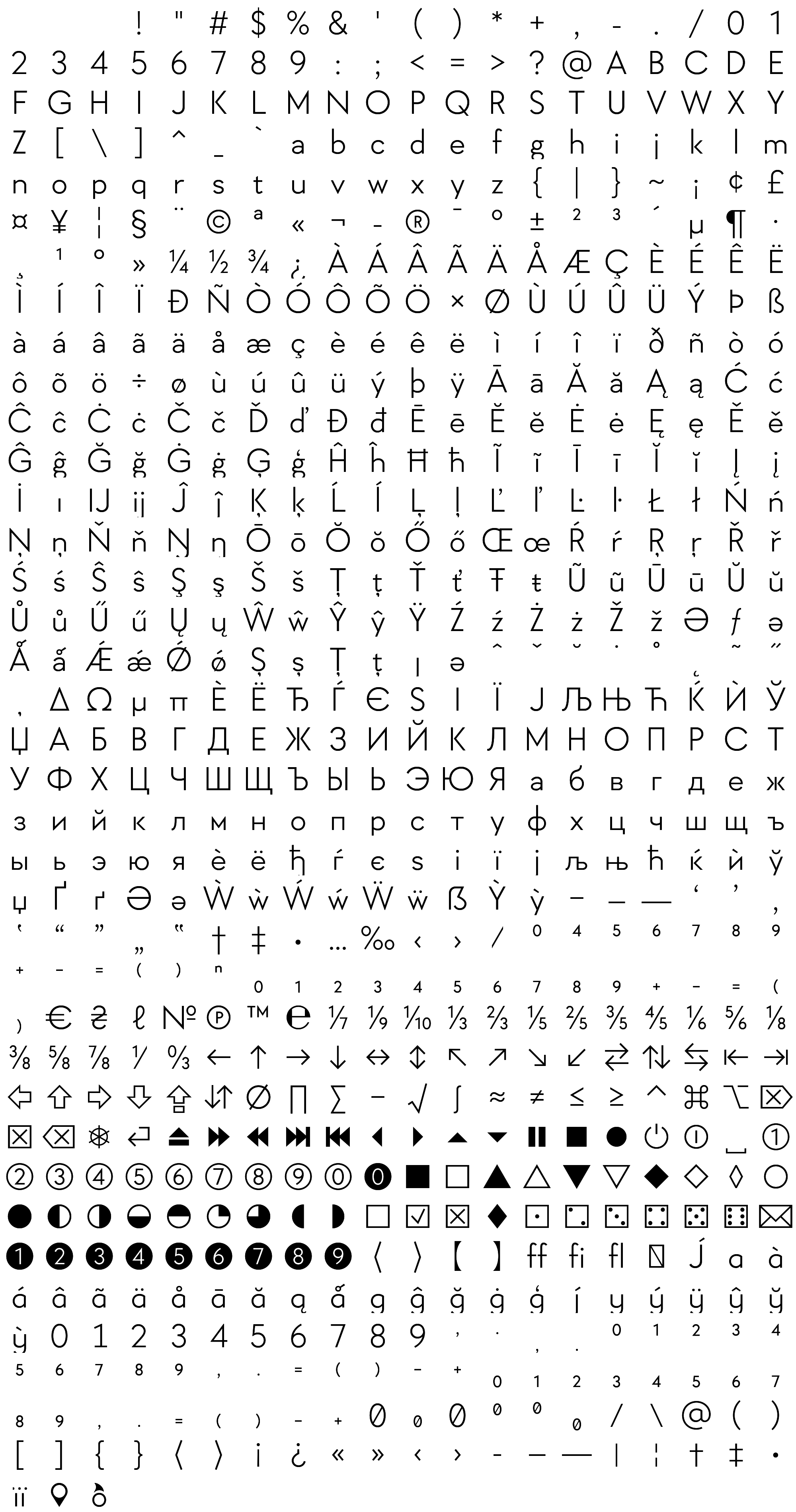 Due to the nature of thumbs' generation process, some of the glyphs in the glyph map may appear cropped.