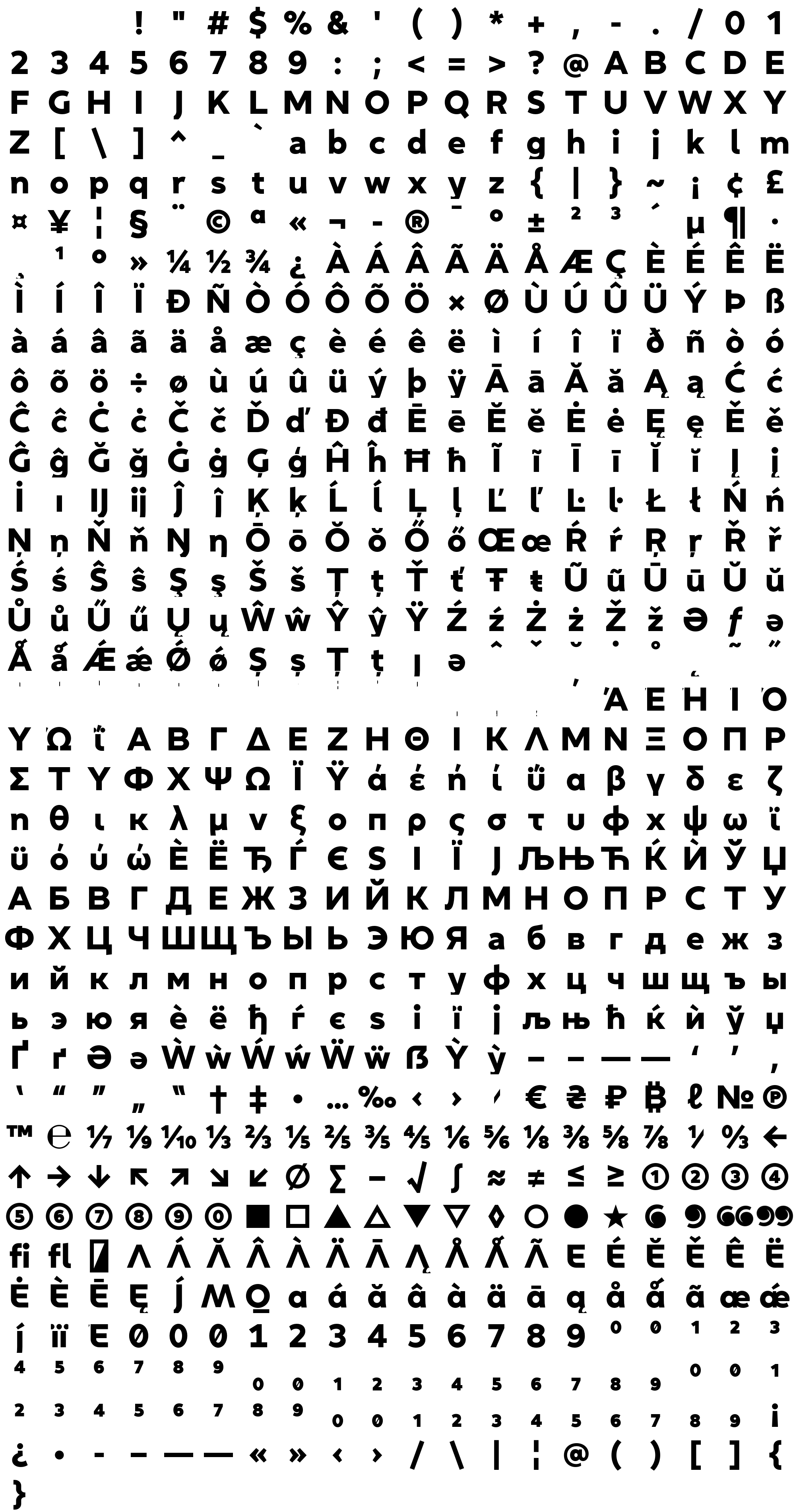 Due to the nature of thumbs' generation process, some of the glyphs in the glyph map may appear cropped.