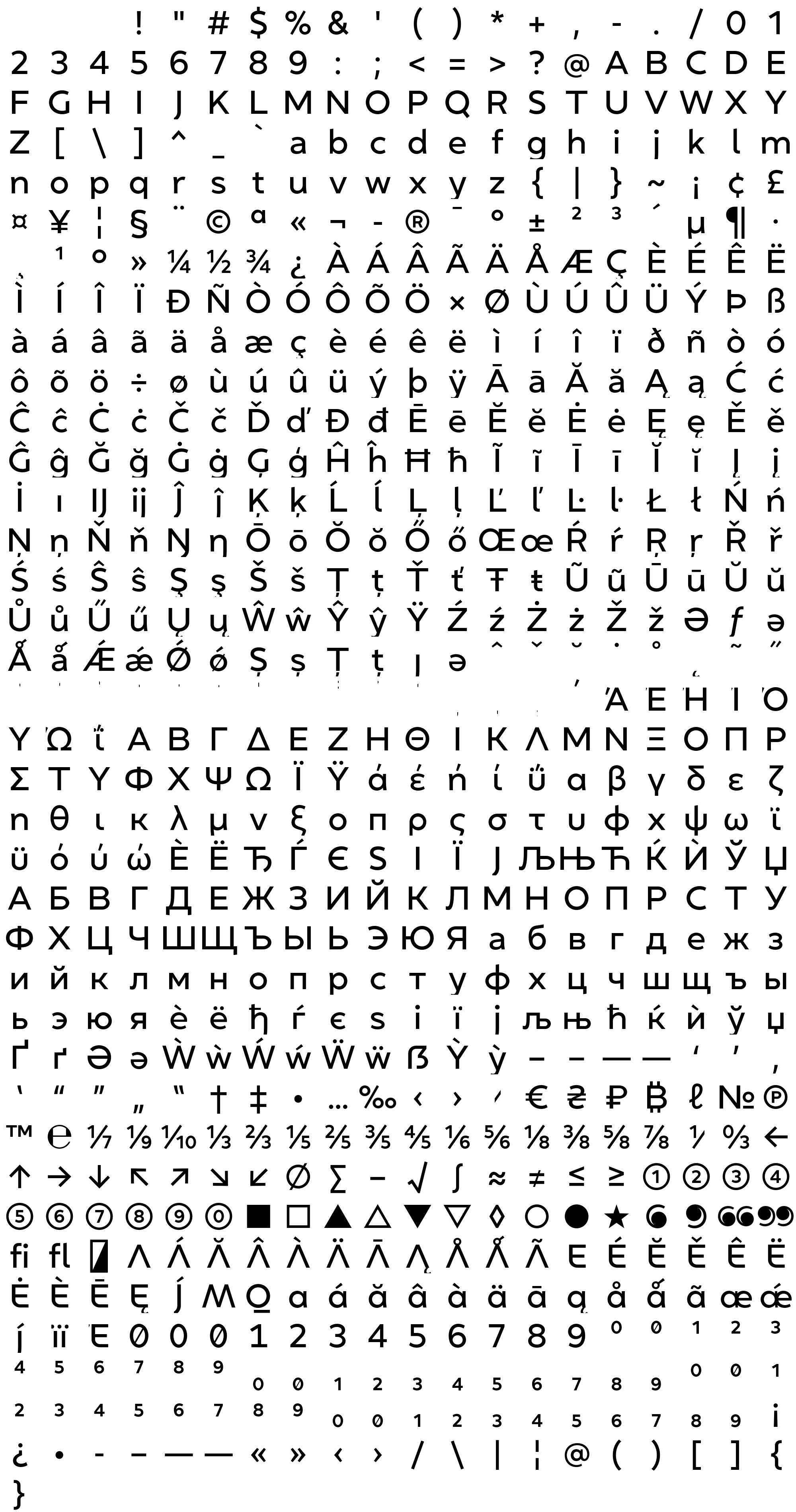 Due to the nature of thumbs' generation process, some of the glyphs in the glyph map may appear cropped.