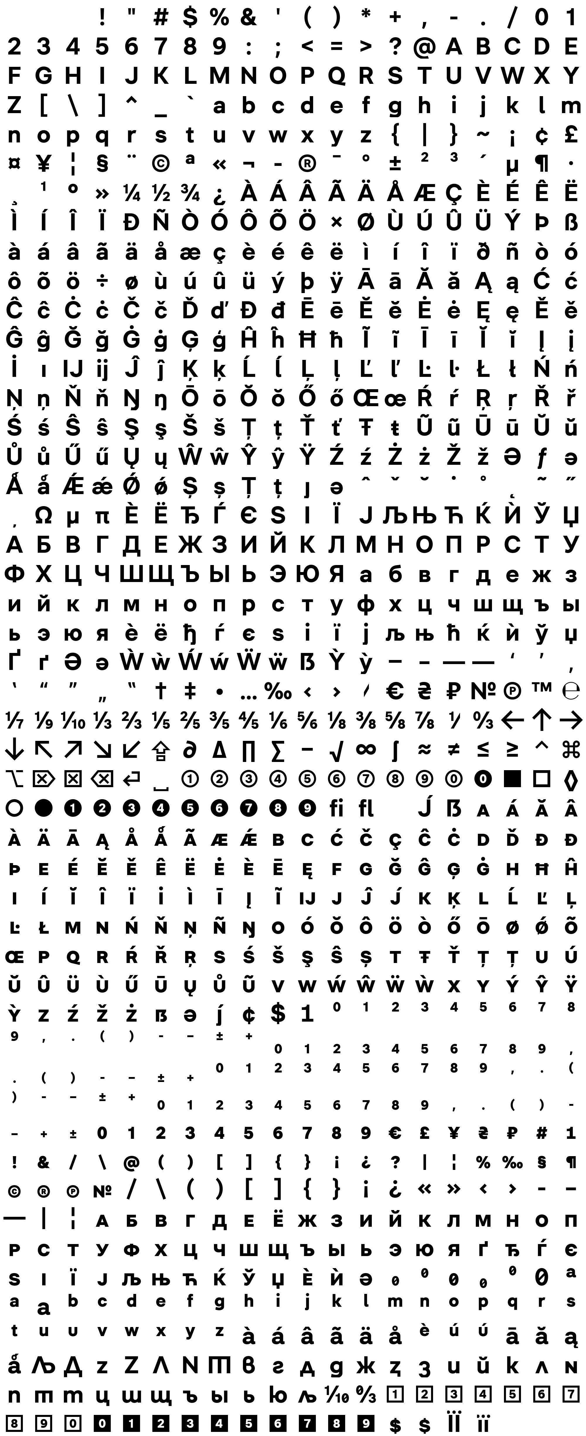 Due to the nature of thumbs' generation process, some of the glyphs in the glyph map may appear cropped.