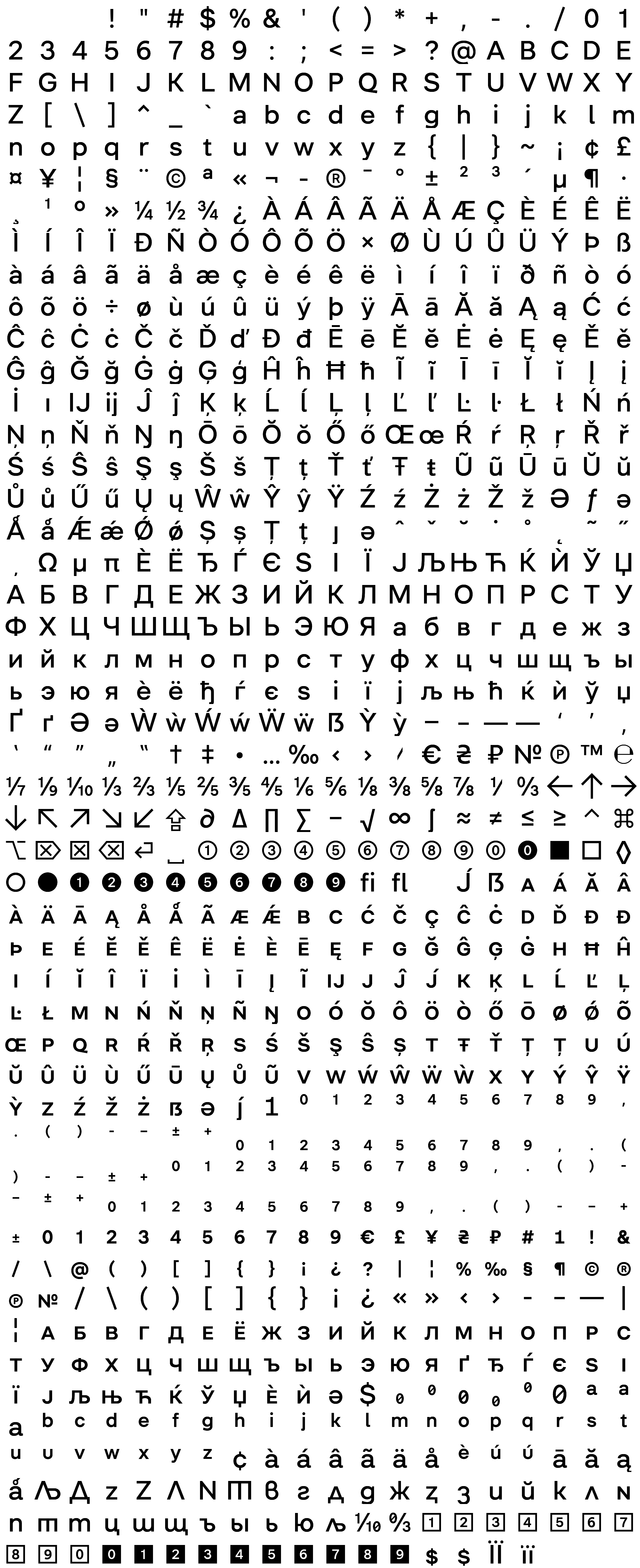 Due to the nature of thumbs' generation process, some of the glyphs in the glyph map may appear cropped.