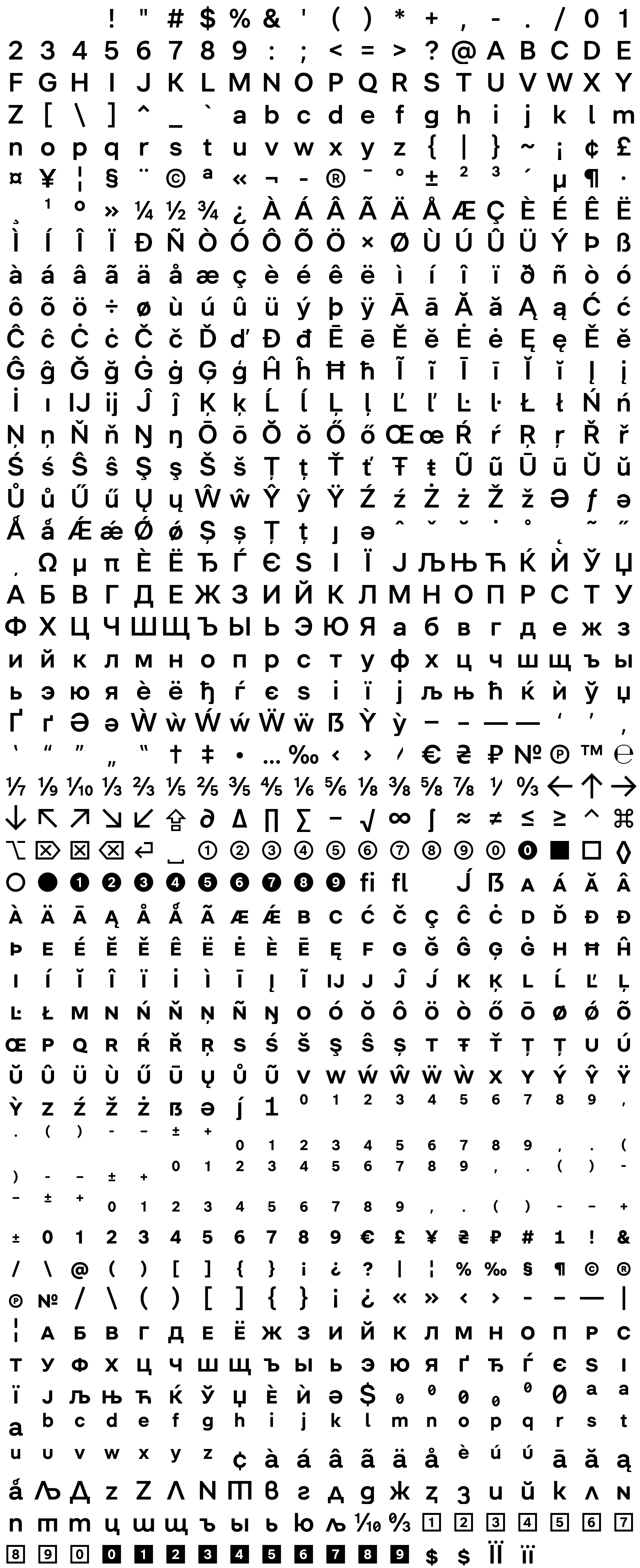Due to the nature of thumbs' generation process, some of the glyphs in the glyph map may appear cropped.
