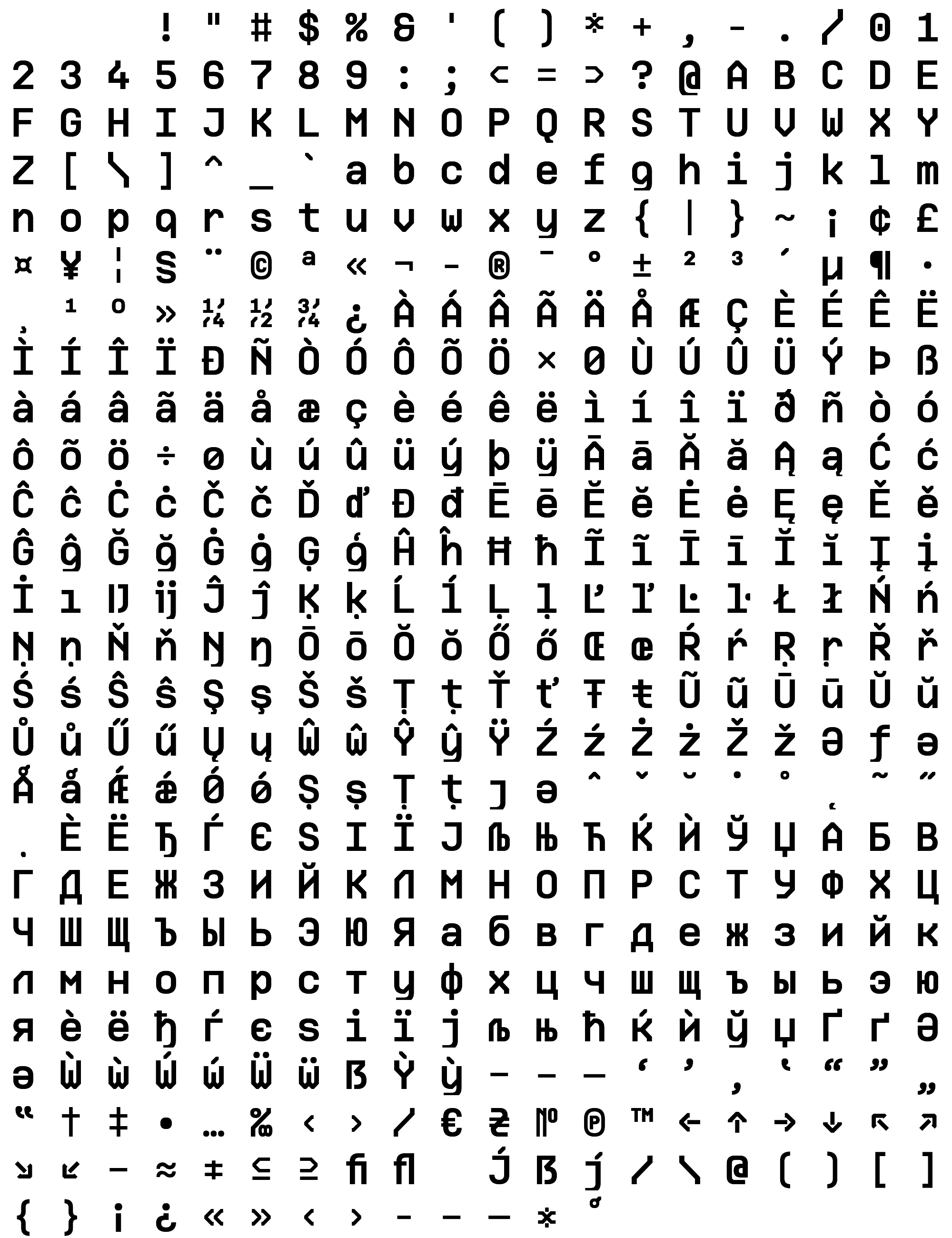 Due to the nature of thumbs' generation process, some of the glyphs in the glyph map may appear cropped.