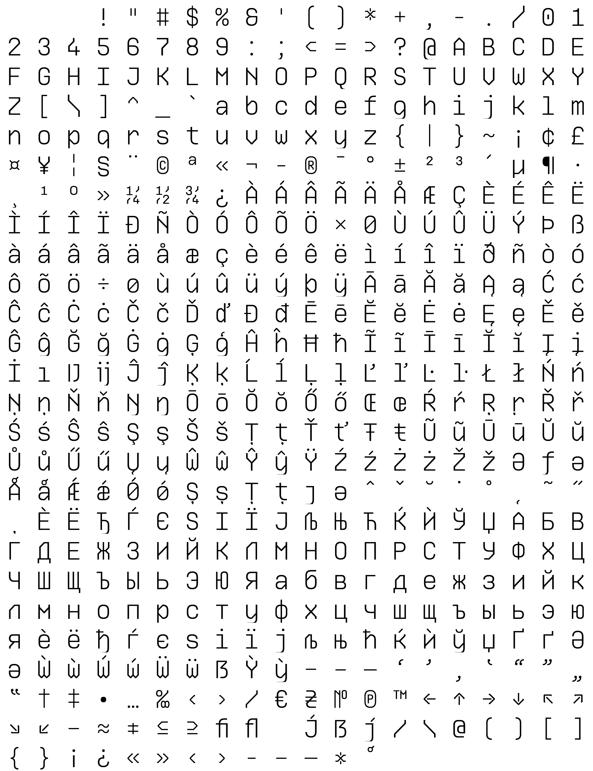 Due to the nature of thumbs' generation process, some of the glyphs in the glyph map may appear cropped.