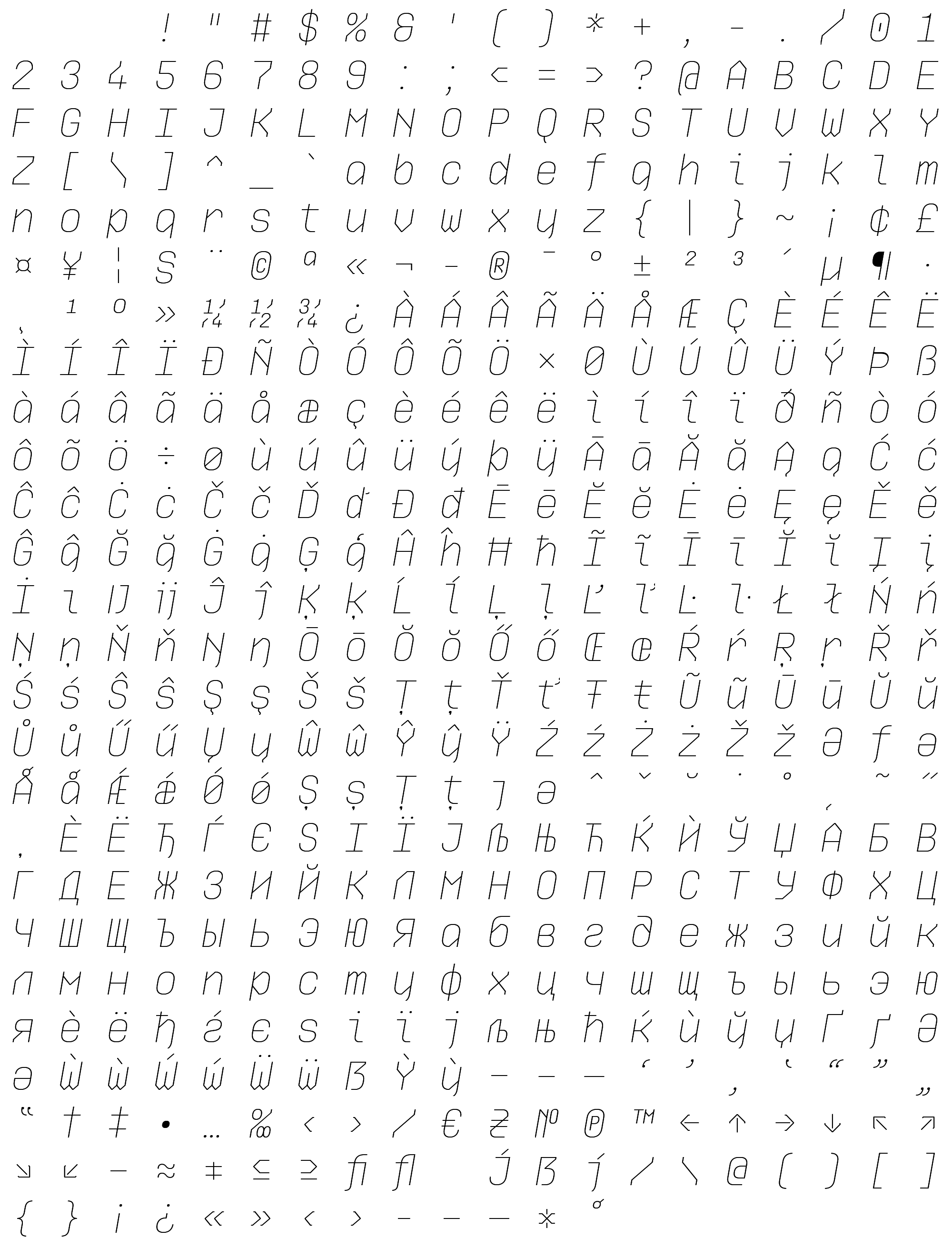 Due to the nature of thumbs' generation process, some of the glyphs in the glyph map may appear cropped.