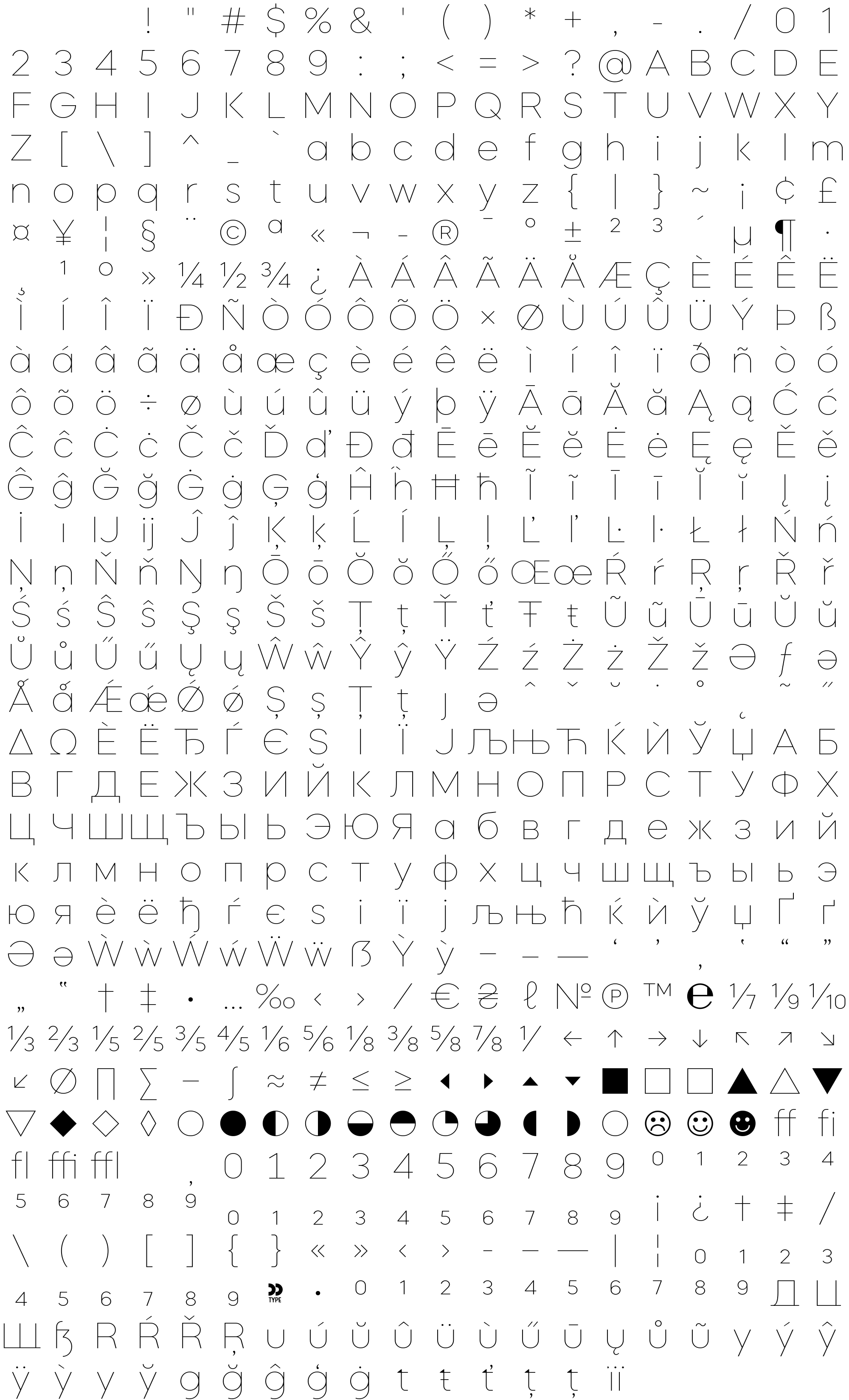 Due to the nature of thumbs' generation process, some of the glyphs in the glyph map may appear cropped.