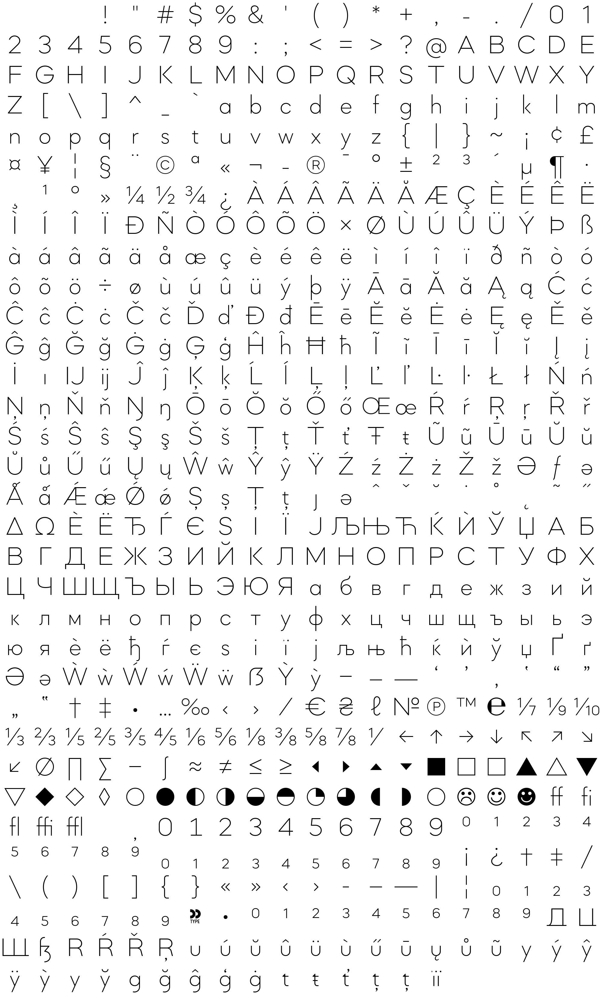 Due to the nature of thumbs' generation process, some of the glyphs in the glyph map may appear cropped.