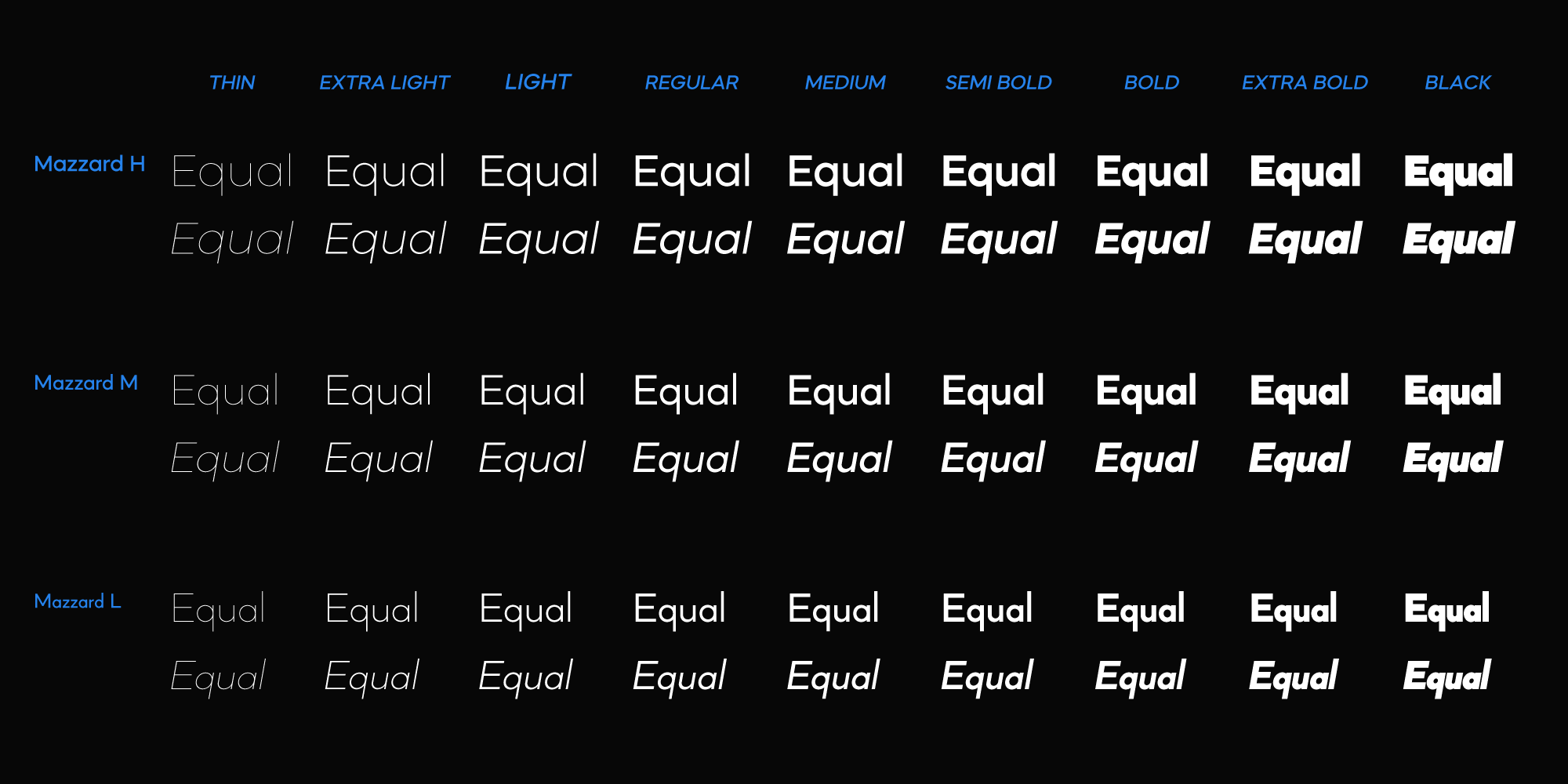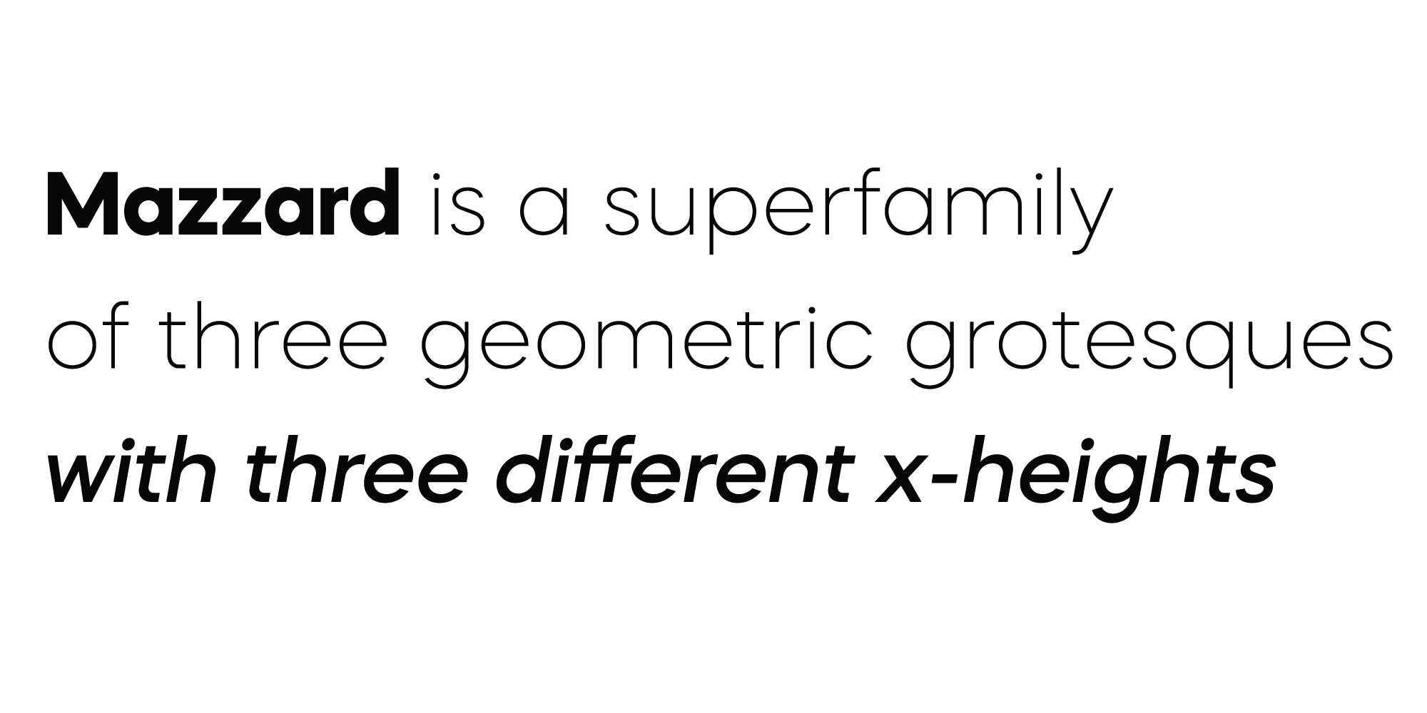 Mazzard is a superfamily of three geometric grotesques with three different x-heights.