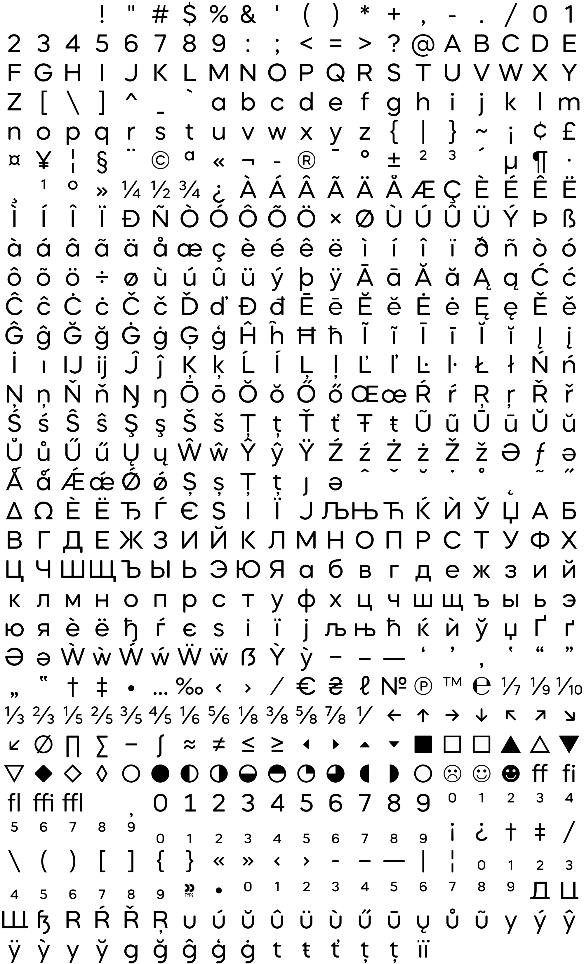 Due to the nature of thumbs' generation process, some of the glyphs in the glyph map may appear cropped.