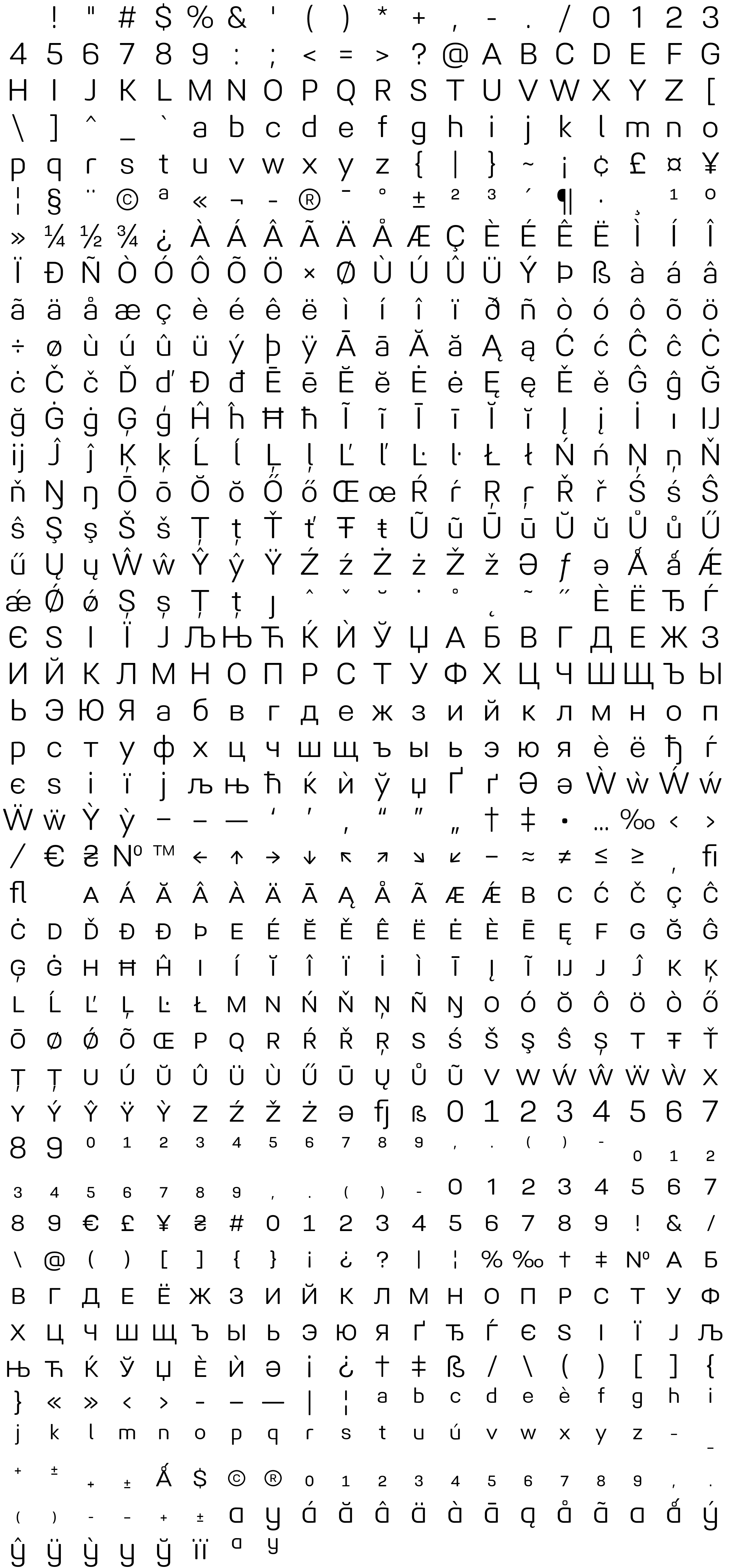 Due to the nature of thumbs' generation process, some of the glyphs in the glyph map may appear cropped.