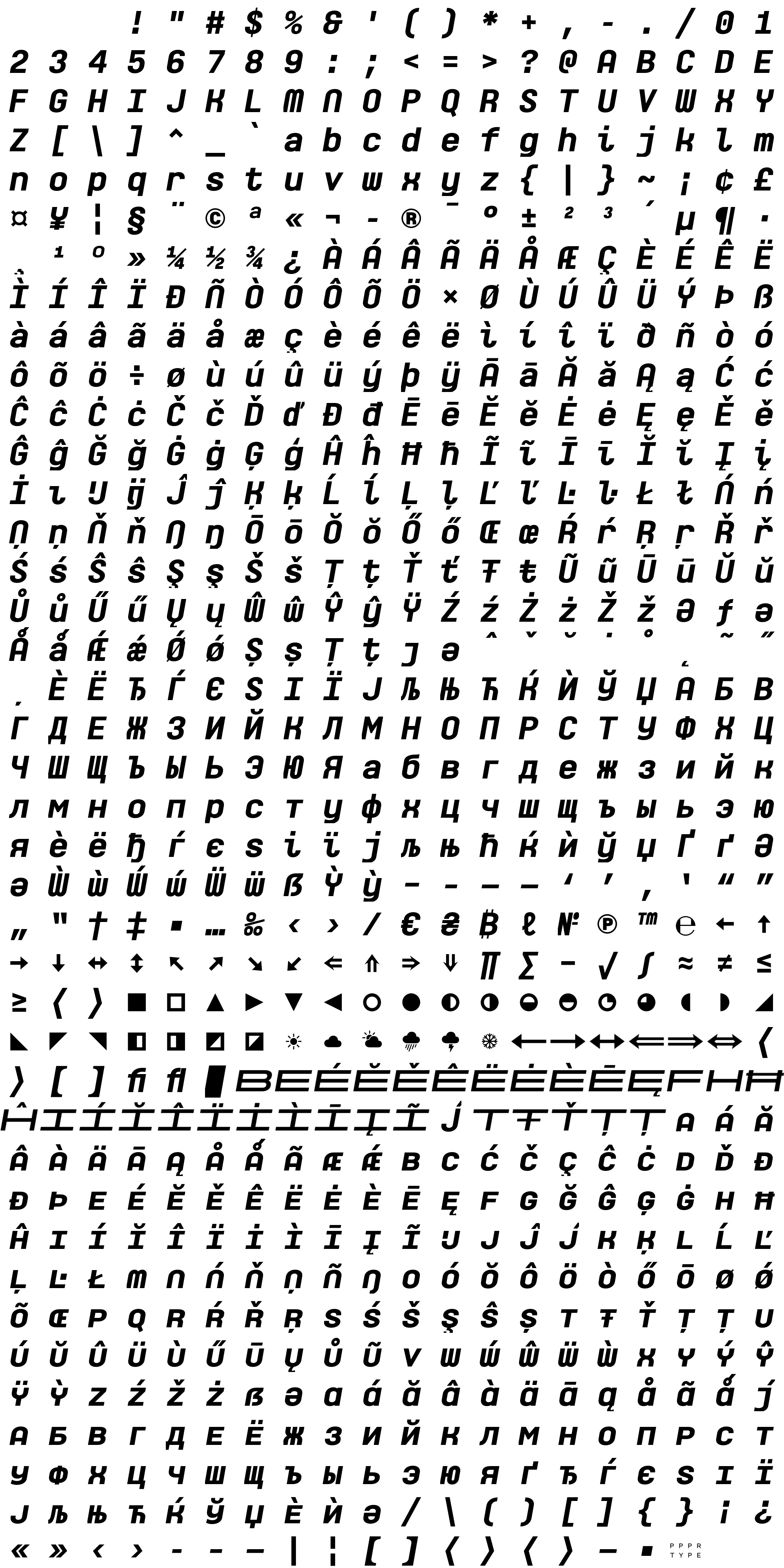 Due to the nature of thumbs' generation process, some of the glyphs in the glyph map may appear cropped.