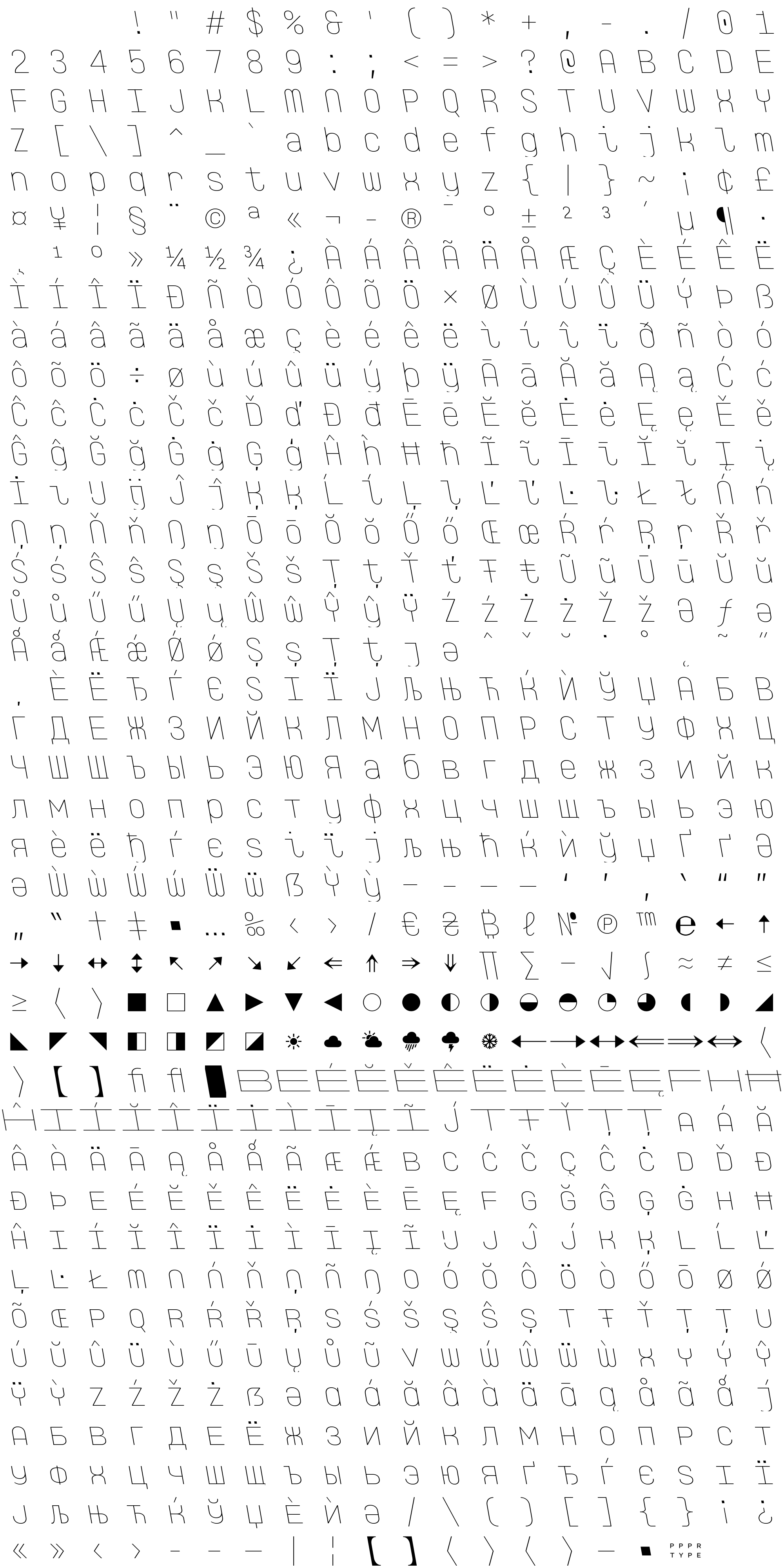 Due to the nature of thumbs' generation process, some of the glyphs in the glyph map may appear cropped.