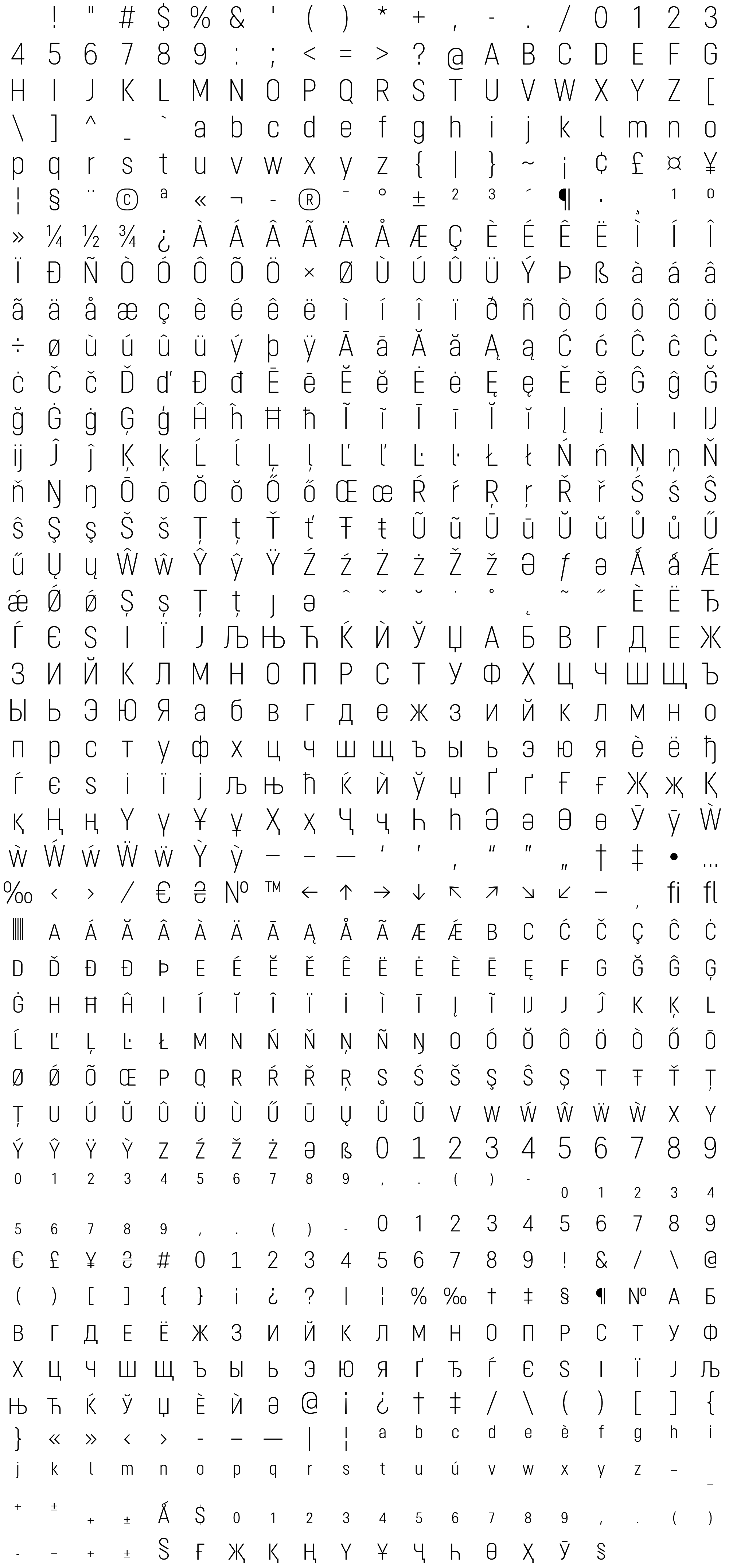 Due to the nature of thumbs' generation process, some of the glyphs in the glyph map may appear cropped.