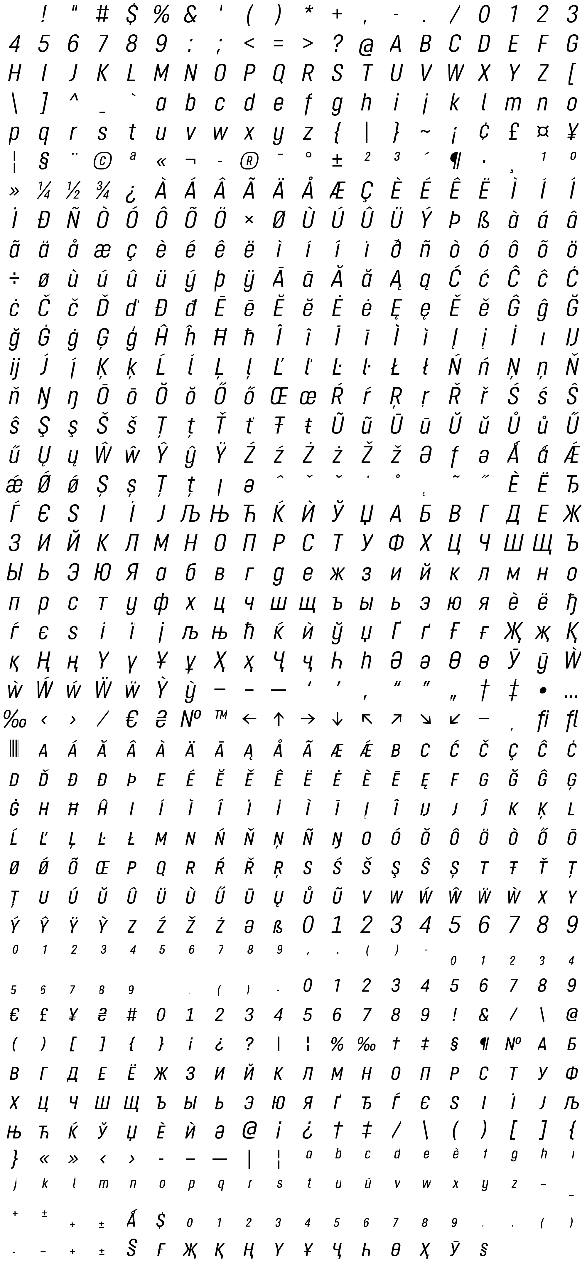 Due to the nature of thumbs' generation process, some of the glyphs in the glyph map may appear cropped.