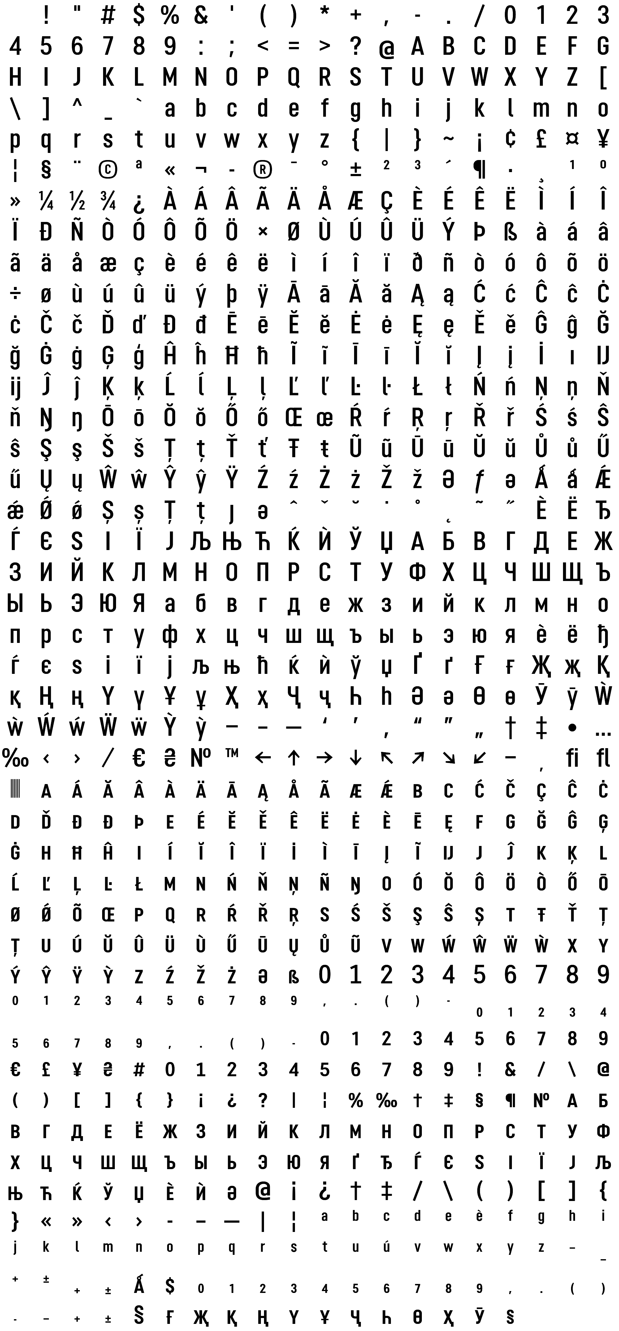 Due to the nature of thumbs' generation process, some of the glyphs in the glyph map may appear cropped.