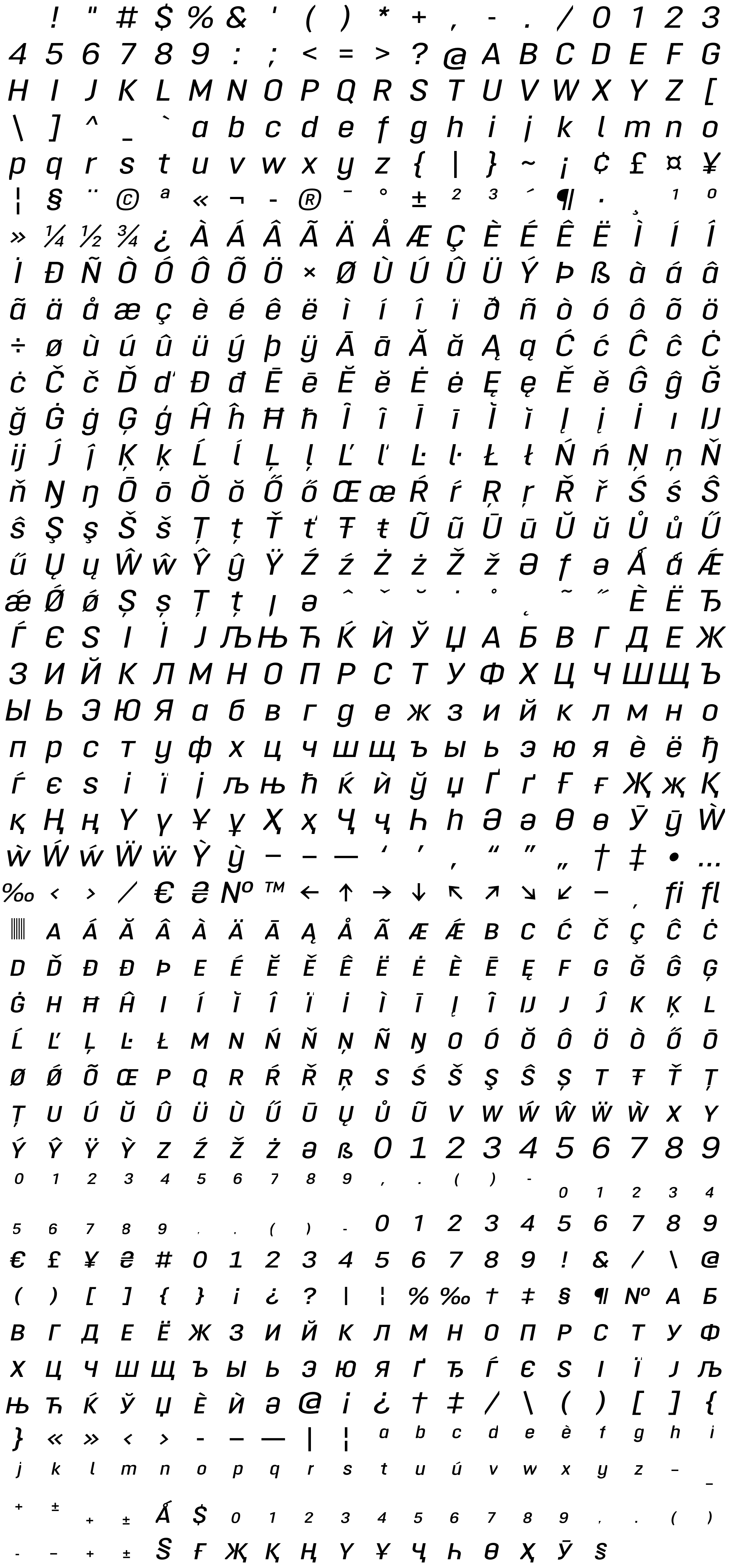 Due to the nature of thumbs' generation process, some of the glyphs in the glyph map may appear cropped.