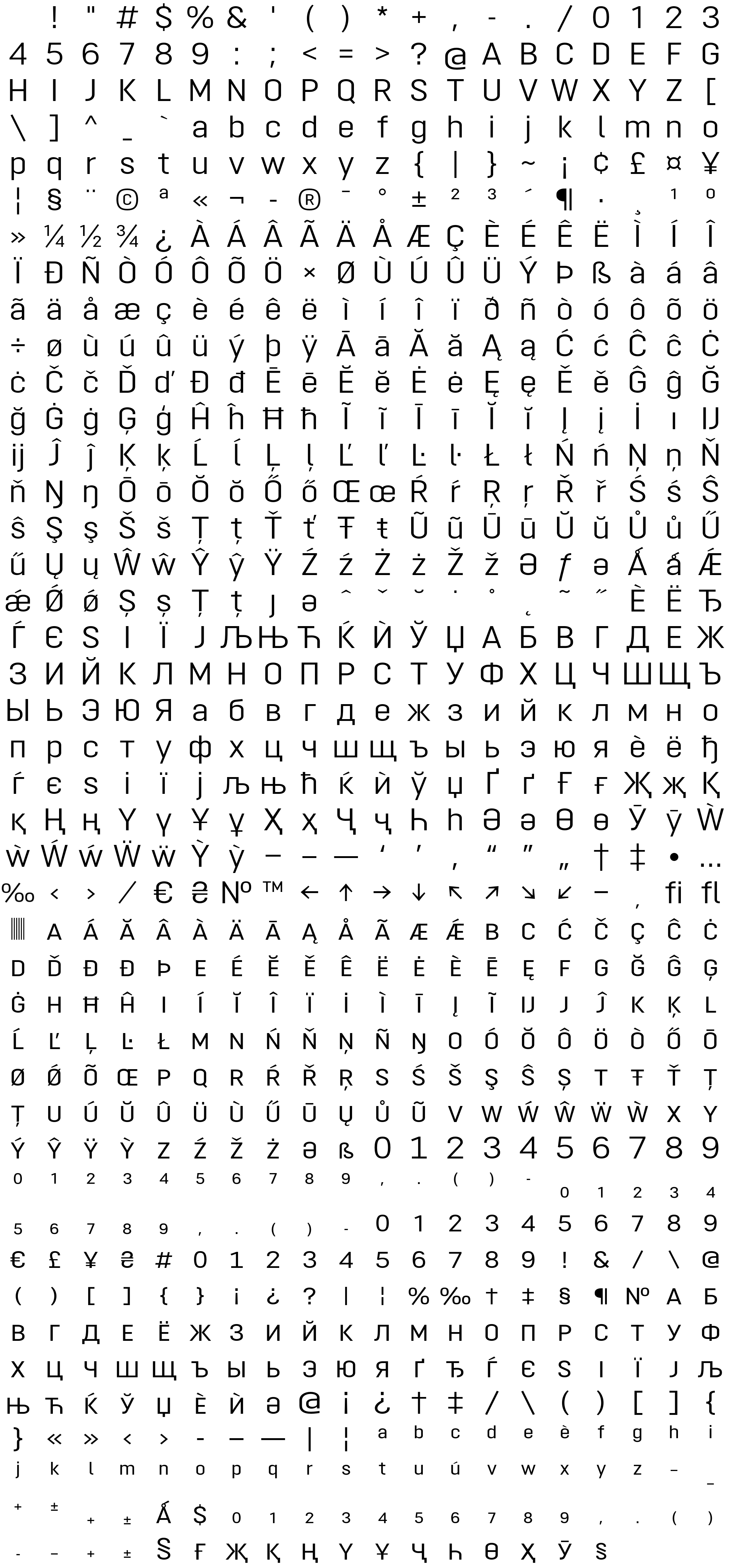 Due to the nature of thumbs' generation process, some of the glyphs in the glyph map may appear cropped.