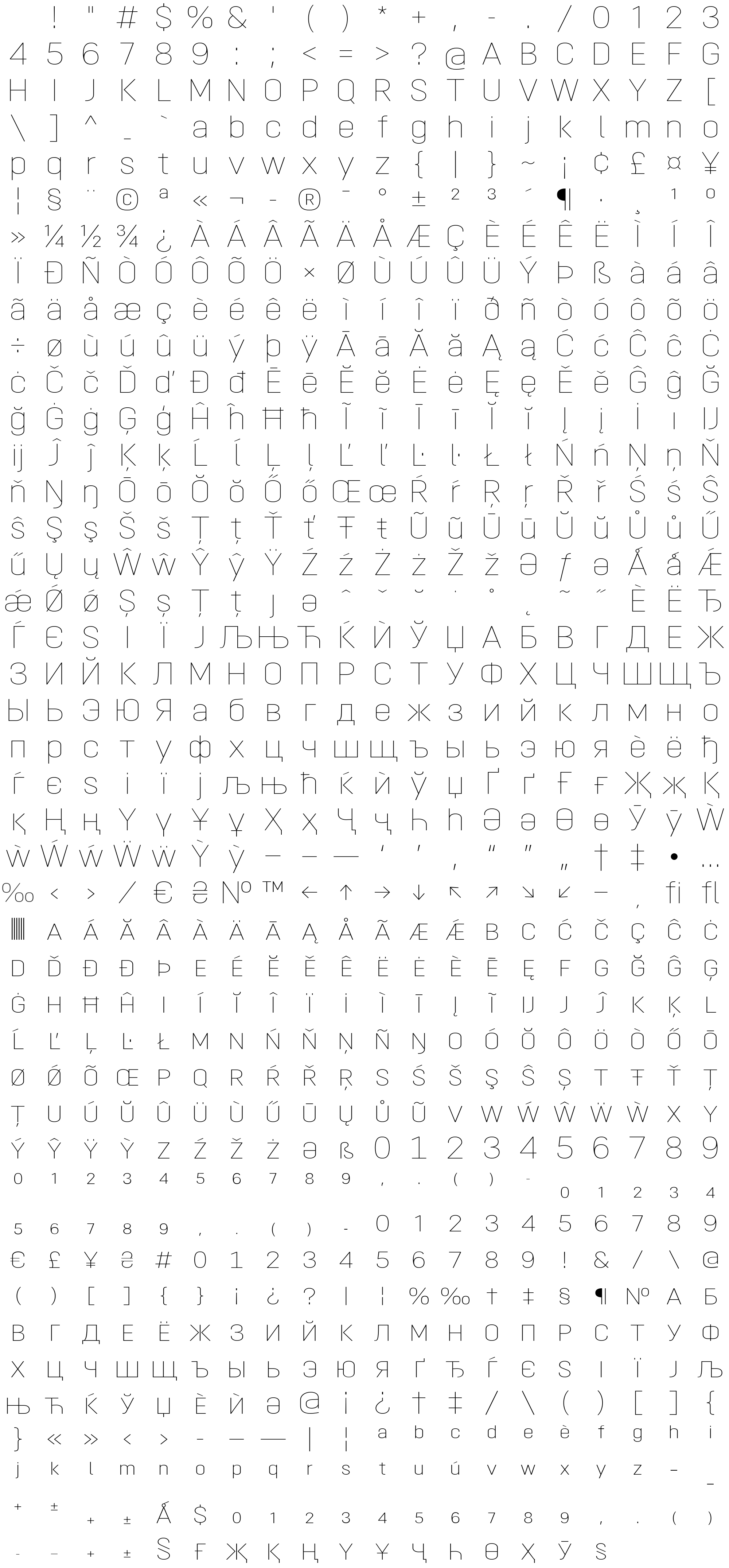 Due to the nature of thumbs' generation process, some of the glyphs in the glyph map may appear cropped.