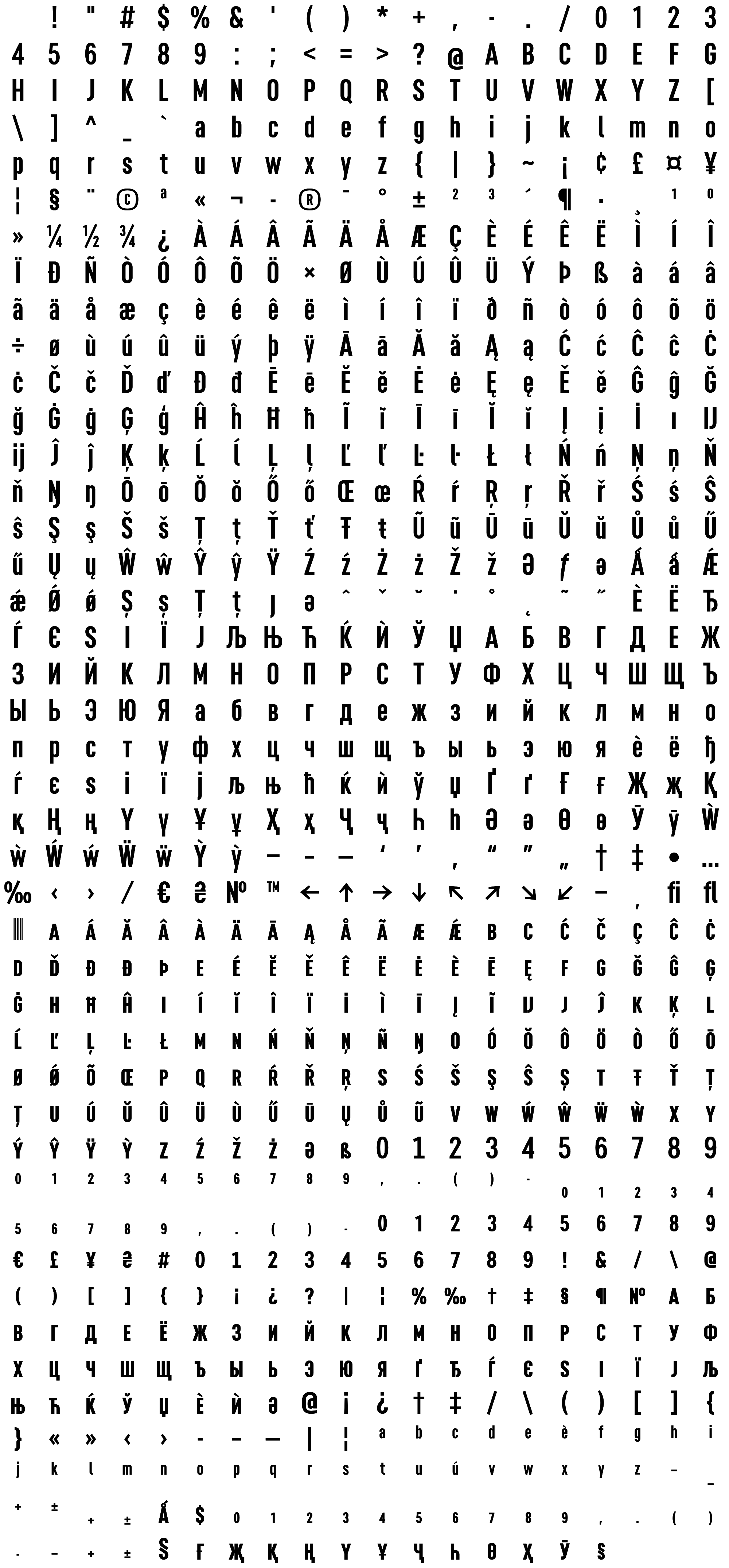 Due to the nature of thumbs' generation process, some of the glyphs in the glyph map may appear cropped.